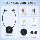 Wireless Headphones for TV with 2.4G RF Transmitter Charging Dock, Personal Wireless Headphones for TV with 2.4G RF Transmitter Charging Dock, 100FTRange, Plug and Play, Personal Volume Control in-Ears Earbud Headphones for Senior & Hearing Aid, No delay, Support RCA/AUX Features . DAYSNEW wireless TV headphones Featuring 2.4GHz millisecond response technology, which has faster connection speed and stronger anti-interference, 30M/98 ft working range is three times that of traditional Bluetooth headsets (33ft). Even if you walk around and enter another room, it does not disconnect or make noise. DAYSNEW Wireless TV headphones has a private volume that can enjoy own volume in the headset or adjust the loud headset volume without affecting TV volume. So you can enjoy TV in high volume anytime without worrying about disturbing family. Daysnew TV headphones supports hearing aids mode, which can be switched via the MIC button. It enhances the sound of the surrounding environment and helps the hearing impaired to improve communication.Can be a great choice as a gift for seniors. & Headphones for TV is no complicated pairing process, It supports plug and play that connect the transmitter dock to TV via the included cable (RCA/AUX). Up to 5-6 hours of battery life allows you to watch two movies in full, and when the battery runs out, simply place it on the transmitter charging base for a quick charging. & DaysnewTV headphones wireless for seniors are lightweight and come with soft earbuds in different sizes to suit different groups of people. You will get 1*television headphones, 2*earbuds, 1*transmitter/charging dock, 1*3.5mm audio cable, 1*3.5mm RCA cable, 1*AD/DC adaptor, 1*user manual. Details Fast Shipping You're already purchasing the item. We get your order shipped out within 1-3 business days and delivered to your doorstep as quickly as possible. Competitive Pricing With our dynamic pricing model, our prices are always competitive. Our prices are some of the lowest that you will find on the internet. Rest assured that you're getting a good deal when purchasing with us. 30-day Money Back Guarantee We are committed to making sure that you leave this transaction satisfied. If you're unhappy with the product for any reason, you may return it back for your money-back within 30 days.