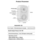 Welcome Infrared Chime Doorbell Wireless Adjustable Volume Door bell with Recording function Specifications: Color: White Size: 85*52.5*37.3mm Power: 3*AA batteries (not included) Material: ABS plastic Volume: 3 volumes adjustable Operating current: Sleep standby state (≤100uA) and Playback state (≤300mA) Features: Sensor: Sensor , no wiring is required. Convenient: Detect movement you will know anyone entering your setting area. Household Supplies: sensor convenience. Applications: Door suitable for home, business shops, stores, hotels, factories, doorway entrance place requiring either guest saluting function. Automatic.Automatic induction broadcasting,induction distance 4~6 meters. How to record: Long press the recording button to record,you can record what you want to say. Package Includes: 1x Doll Bell(Not included 3* AA Batteries) 1x Sticker