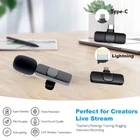 1. 9 ms ultra-low latency,20 m barrier-free reception, it can use outdoor live broadcasts and take a small video. 2. It doesn't need an APP, plug-and-play, or one-click connection, easy to wear. 3. Intelligent noise reduction, long endurance of 10 hours, easy to cope with all kinds of noisy environments,worry-free shooting, meet your needs for a day. 4. 360 full pointing pick up, record every detail of the sound. 5. Small and convenient, it is compatible with various devices, and support mobile phone, tablet, camera, notebook, etc Specification: Input voltage: DC4.8-5.4V Charging port: for Lightning/Type-C Battery capacity: 80mAh Transmission Distance: 8 m barrier, 20 m barrier-free Microphone size: 62*23 * 28mm Microphone weight: 7g Receiver size: 45*27 * 7mm Receiver weight: 4g Package included: 1 x Rechargeable Wireless Microphone 1 x Receiver 1 x English Manual 1 x USB cable