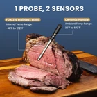 Wireless Meat Thermometer for Grilling and Smoking, CP10 New Gen 500FT Black Product Details Package Dimensions : 7.32 x 2.52 x 2.36 inches; 9.91 ounces Item model number : CP10 Batteries : 1 Lithium Polymer batteries required. Manufacturer : IDIAK Country of Origin : China Brand: IDIAK Special Feature: Waterproof, Alarm, App Companion, Fast Refresh, High Accuracy Color: Black Age Range (Description): Adult Included Components: CP10 Hub, Wireless Meat Thermometer Probe, User Guide, Type-C Cable Outer Material: Plastic Specification Met: FDA, CE, FCC, RoHS Display Type: Digital Connectivity Technology: Remote App Product Care Instructions: Wipe Clean [Unique Design Concept]: The unique design of the wireless meat thermometer CP10's charging hub, fashioned to resemble a Time Capsule, symbolizes more than just a tool for precise temperature measurement; it represents a vessel for preserving cherished culinary moments through time.The Wireless probe handle adopts a Four-Clover Design, making it an excellent gift for husband, father, wife, or any friends who enjoy food. [Truly 100% Wireless Freedom]: Our kitchen thermometer allows you to be completely free from tangled wires and connects using innovative wireless technology, you can easily monitor the temperature of your roast within a 500FT range. The smart wireless meat thermometer is suitable for barbeque, ovens, stoves, smokers, grills, air fryers and more! Enjoy the fun of grilling meat freely. [Dual Sensors and Accurately Reading]: Two sensors simultaneously monitor the temperature internal the meat and the ambient, accurate readings in 3 seconds, precise temperature control ensures that every piece of meat you cook is perfectly done, say goodbye to the embarrassment of overcooked or undercooked meat. Cook your favorite foods like a master, such as chicken, steak, fish, turkey, pork, brisket and more. [Smart APP]: The iDiAK APP is preset with USDA temperatures or customize it yourself. Choose the food or temperature you need to cook and you will be alerted on both your phone and the hub when the target temperature is reached, giving you more time to do what you want to do. Plus the APP comes with a customized timer and temperature chart. [Ready to Use Fast Charging]: As long as the hub has batteries installed and Type-C plugged in, the wireless meat probe can be charged even when the hub is turned off. The probe can be used for over 3 hours with just 5 minutes of charging or over 48 hours with 2 hours of charging. No more worrying about running out of power.
