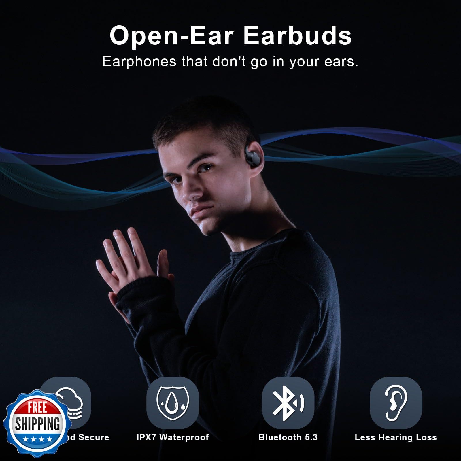 Open Ear Headphones, Open Ear Earbuds, IPX7 Waterproof, Bluetooth 5.3 True Wireless Sports Over Ear Earbuds with Earhooks, Built-in Mic, Crystal-Clear Calls for Running Workout Cycling Driving Features Open Ear Design - The wireless bluetooth earbuds feature with open ear design. The earbuds do not go into your ears. No fear of ear fatigue and infections. Soft and flexible earhooks bring you ultimate ear comfort. You can stay aware of the surroundings when listening to music, more secure for your daily use. IPX7 Waterproof & Designed for Workout- The wireless open ear earbuds are ideal for all sports enthusiasts. The premium material bring super IPX7 waterproof performance. No fear of bad weather or sweat. Ergonomic earhook ensures the earbuds will not drop even when you do vigorous exercises. Bluetooth 5.3 & Stunning Audio Quality - The open ear headphones apply the latest bluetooth 5.3 chip, which can provide fast and stable connection. 16.2mm dynamic speaker can deliver super bass effect and amazing stereo sound. DT 6.0 directional sound transmission technology ruduces sound leakage. Immerse yourself in the HiFi sound quality. Bring you closer to the music. Up to 36H Listening - The playtime of the open ear headphones can be 8 hours (for music) / 9 hours (for phone calls), and up to 36H with charging case. You can listen all day without charging. The LED display allows you to know battery level at any time. Smart Noise Cancelling - The wireless headphones come with dual-mic noise cancelling technology, which can lower environmental noise more intelligently when you make phone calls. The physical button has better tactile feels. You can do all operations like answering phones, adjusting volumes all in one button. Shipping Free & Fast Shipping: We offer free shipping to most of the USA with a normal delivery time of 3-7 days. However, due to the current situation, additional delivery time (up to 3 weeks) may be required for some items. Alternative Carriers: We may use alternative carriers (e.g., USPS, FedEx, UPS) to ensure your package arrives safely and on time. Due to the use of multiple carriers, we are unable to provide a tracking number automatically. Handling Time: Orders are processed and shipped within 1-2 business days of receiving cleared payment. Shipping Restrictions: Shipping to Alaska, Hawaii, Puerto Rico, Guam, and other US territories may incur shipping charges or delivery restrictions. Please contact us before ordering, or your order can be refunded/cancelled. State Restrictions: Certain items may not be shipped to California due to state regulations. Contact for Tracking Updates: If you require tracking updates or have any concerns about the delivery of your order, please feel free to contact us, and we will be happy to assist you. Return Policy 30-Day Hassle-Free Returns: If you are not completely satisfied with your purchase, you can return the item for free within 30 days of receiving it for a full refund or exchange. Easy Return Process: Contact us, and we will provide you with a prepaid return shipping label and detailed instructions. No Restocking Fee: There are no restocking fees for returns. However, the buyer is responsible for return shipping costs if the return is not due to a seller"s error. Refund Processing: Refunds will be processed within 1 business day of receiving the returned item in its original condition. Feedback Your feedback is extremely important to us. We strive to provide the best products and customer service possible. If you are satisfied with your purchase, please take a moment to leave us a positive review. If you have any concerns or issues with your order, please contact us before leaving negative feedback. We are committed to resolving any problems and ensuring your satisfaction. Contact Us If you have any questions or concerns, please feel free to reach out to our customer support team. You can contact us through the eBay messaging system. We are available Monday to Friday, 9:00 am to 5:00 pm EST, and we will do our best to respond to your inquiry within 24 hours. Thank you for supporting our small family business!