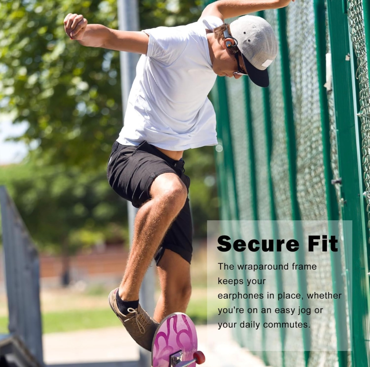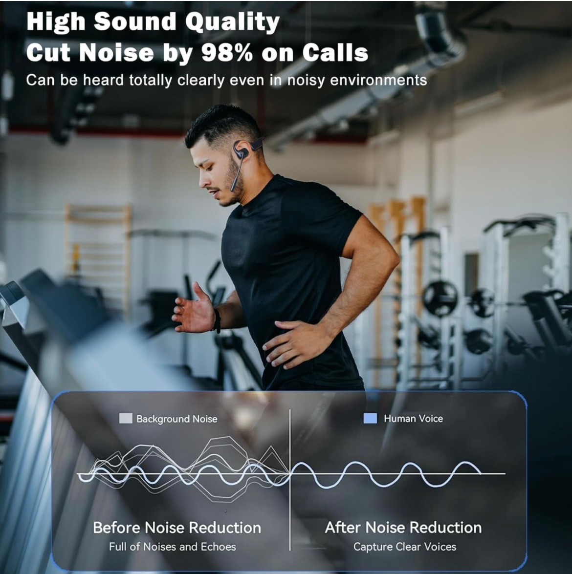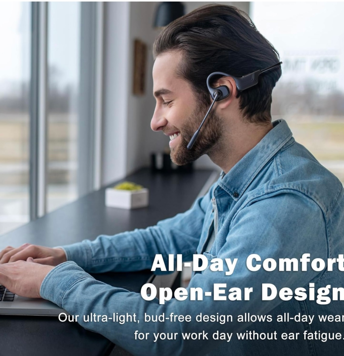 Open Ear Headphones with Mic, Bluetooth Headset with Microphone, AI Noise Cancelling Multipoint Connect Bluetooth 5.3 Headset, Sweatproof Wireless Headset for Work, Driving, Running, Workouts Features & details: Open-Ear Comfort: voijump headphones features the best fit. Modern design combines comfort and innovation.Avoid the discomfort of in-ear headphones with our bud-free design.This Bluetooth headset with microphone does not cover your ears, allowing your ears to remain open and fully alert while listening to your preferences. Ensure your safety during outdoor activities such as exercising, cycling, hiking, driving, etc. Advanced Noise Cancellation Mic: Advanced noise-canceling technology isolates your voice from the noise around you, so you can focuse on what you want to do ,even in the noistest work environment.225° flexible mic can be positioned for better voice capture and background noise reduction.It's equipped with a mute button, perfect for truck drivers, Skype meetings,taking conference calls and outdoor working or studying Ultra-light & Supreme Comfort: At just 0.06 pounds,ultra-light wireless headset features skin-friendly soft silicone ear pads and ergonomic design to ensure a comfortable wearing experience even when wearing a helmet and glasses, which feels almost weightless and provides you comfortable wearing experience for intensive all-day use. Open-back headphones ensure a snug fit behind the ear, stayingstable and in place during high-intensity training Wireless Bluetooth 5.3 & Multi-point Connection:Widely compatible with most Bluetooth-enabled devices, like cellphone, computer, tablet and laptop, etc. Simultaneously connect any two Bluetooth devices via Bluetooth 5.3 and seamlessly switch between the two at will,which can maintain a fast and stable connection.The 33 feet wireless range provides freedom to roam while staying connected,you don’t even have to be able to find those phones to take a call Multipurpose Use: This open earphone with microphone is equipped with a multi-function button. You can easily control play, pause, answer and end calls with one hand, allowing you to easily switch between calls and music. Perfect for professionals working remotely or participating in video conferences, and is also suitable for activities such as driving, running, hiking, cycling, gaming, etc. Long Battery Life:voijump trucker wireless headset provides up to 10 hours continuous talking time and 200 hours standby time with a single full charged in just 2 hours.