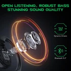 【Open Ear Bluetooth Headphones】: T17 introduces a new generation of true wireless open earbud design, paired with ergonomically designed ear clips to ensure a comfortable and secure fit for your ears, effectively reducing the risk of pressure and hearing loss from prolonged wear. This design not only provides an excellent wearing experience but also retains natural ventilation for your ears, allowing you to enjoy music or calls for extended periods without discomfort. 【ENC Noise Cancellation】: T17 open ear Bluetooth headphones not only offer efficient communication but also add a layer of "mute shield" for calls. Its microphone array utilizes directional sound pickup technology, enabling intelligent call noise cancellation for clearer communication and a higher-quality communication experience. Regardless of your location, these headphones provide high-quality call performance, elevating your communication experience to new heights. 【Versatile Usage】: The T17 wireless open earbuds are suitable for various life scenarios, whether you're cycling, exercising, running, traveling, or studying, they can be your ideal companions. According to your different needs, you can easily switch to music mode (reducing leakage by 80%) or game mode (with ultra-low latency and shorter Bluetooth transmission distance), providing you with richer experience options. 【Immersive Sound Quality】: These Bluetooth earbuds feature a 16.2mm vibration diaphragm speaker driver unit, three times larger than other wireless earbuds, providing you with an immersive auditory experience where sound surrounds you. Equipped with a 5.3 Bluetooth chip, it ensures stable, interference-free connection for faster and more stable audio transmission. 【Long Battery Life, Ultra-Light Design】: These wireless earbuds can play for up to 8 hours on a single charge, while the charging case can provide up to 30 hours of continuous playback time. Its 2.2cm ultra-thin charging case design is both lightweight and convenient, ensuring a perfect combination of aesthetics and portability. Each earbud weighs only 9g, allowing you to shuttle freely between comfort and style. 【Professional Waterproof and Sweatproof】: The T17 open ear wireless headphones feature IPX6-level waterproof technology, providing excellent waterproof performance for your headphones. Whether you're outdoor exploring, commuting, or exercising, you can use them with confidence, without fear of water damage. Outstanding waterproof technology enables Bluetooth headphones to easily cope with various challenges, allowing you to focus on enjoying music or calls without worrying about device damage.