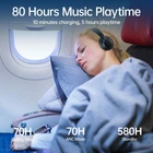 [Active Hybrid Noise Cancellation&Superior Sound Quality] This Over-ear bluetooth headphones features advanced Hybrid Active Noise Cancellation technology, which blocks out most background noise to provide you with a clear, immersive listening experience.No matter how noisy your surroundings are, you'll always hear loud and clear sound when you're on the phone.Elevate your sound quality for the best headphone experience. [Multiple connectivity modes for a wide range of applications] Three flexible connection modes are available: Bluetooth wireless connection, 2.4G dongle wireless connection, and 1.2M Type-C To 3.5mm audio cable connection. The work wireless headset adopts Bluetooth V5.4 technology for faster and more stable connection.With 2.4GHz technology and ultra-low latency, latency ≤10ms, it is not only suitable for calls or video conferencing, but also suitable for gaming, allowing you to enjoy an immersive and latency-free wireless gaming experience. Whether it's on your computer, mobile phone or other devices, you can easily switch to suit different usage needs and scenarios. [High-capacity battery, Long battery life] Equipped with a high-capacity 800mAh battery, With a 4-hour charge, it can be used for 80 hours of music playback (50% volume) and 70 hours of talk time (50% volume). much longer than ordinary headphones,10 minutes charge for 2 hours of playback.Whether you are working long hours or travelling long distances, these headphones can accompany you longer and reduce the trouble of charging frequency. [All-day comfort] The noise-cancelling headphones features ultra-soft, breathable ear cups, an adjustable padded headband and microphone for ultimate comfort throughout the day,designed for people who need to talk for long periods of time or for video conferencing/gaming. [Quick connection and convenient] This headset supports quick pairing function, allowing you to connect your device the moment you turn on the headset, eliminating tedious setup steps and enhancing the convenience of use.