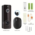 Describe: 1. Material: High-quality ABS material, light and durable, high-definition camera lens, capable of shooting 140° ultra-wide angle, protecting your home safety around the clock 2. Video call: Built-in two-way microphone, when someone rings the doorbell, a push notification will be sent to the mobile phone, and the owner can enter the mobile phone call interface. You can check and talk to the visitor anytime and anywhere. 3. AI human detection: Advanced AI intelligent technology accurately identifies people while filtering out irrelevant movements such as cars and trees. No more annoying alarms to waste your time. 4. PIR Motion Detection: This doorbell has an enhanced motion detection sensor that responds instantly, records short videos, and only sends alerts to your phone when someone passes by or the bell rings. 5. Infrared night vision: Built-in six infrared lights and a smart infrared sensor provide clear, high-resolution video in low-light conditions during the day and night 6. Battery use: The doorbell uses 2*2600 mAh rechargeable lithium batteries. After being fully charged, it can be used continuously for 3 to 5 months. There is no need for frequent charging. The doorbell is powered by USB and has a long battery life. 7. Storage method: This wireless video doorbell will save all recorded videos to the cloud (free for 30 days, does not support local storage) 8. Network connection: Supports 2.4GHz WiFi network connection, use "Aiwit" APP to connect, friendly App operation can help you use it quickly 9. Multi-person sharing: This video doorbell allows up to 8 users to connect to the video doorbell, and up to 3 users can view real-time images at the same time. The main account has the permission to delete other users, which is very suitable for apartments and home front doors. 10. Portable installation: 2 installation methods, which can be pasted with adhesive or drilled, very suitable for apartments and home front doors (note: cannot be installed on wrought iron objects, as it will affect the signal) Specification: Name: Smart Wireless WiFi Doorbell PIR Motion Detection Intercom Doorbell Color: black (as shown in the picture) Resolution: 1920*1080P Sensor: 720P GC1054 CMOS Sensor capabilities: supports automatic white balance, automatic gain control, automatic backlight compensation Working temperature: -10°~60° Power input: DC5V/2A Power supply method: USB charging Batteries used: 2* rechargeable lithium batteries Battery capacity: 5200 mAh (2 * 2600 mAh) Working time: 3-5 months Night vision type: infrared night vision Storage function: 7-day non-cyclic cloud storage (30 days free, no TF card port) WiFi connection: only supports WIFI IEEE802 11b/g/n (2.4GHz), RF 433mhz Voice system: two-way intercom/mobile phone remote prompt viewing System support: Android 4.3 or iOS 9.0 or above Use APP: Aiwit app Viewing angle: 140° wide angle Recording distance: about 5m Waterproof level: IPX4 Doorbell size: 13.5*5*3.8cm Ding Dong machine size: 6.5*3*4.5cm Product gross weight: 310g Package includes: 1*Doorbell 1*dingdong machine 1*Charging cable 2*battery 1*Installation accessories 1*Instruction manual On Sep 12, 2024 at 07:41:48 PDT, seller added the following information: