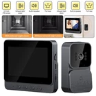 You may also like Wireless WiFi Video Doorbell Smart Phone Camera Door Bell Intercom Security Home 10.99 USD Free shipping Wireless Doorbell Phone Video Door Bell Ring WiFi Smart Intercom Security Camera 44.69 USD Free shipping Wireless Doorbell Camera WiFi PIR Smart Video Doorbell Security Door Bell Ring 37.99 USD Free shipping WiFi Ring Doorbell 1080P HD Security Camera Wireless Door Bell Camera With Chime 37.99 USD Free shipping Wireless WiFi Smart Video Doorbell Security Camera Phone Doorbell Ring Intercom 32.49 USD Free shipping Smart Wireless Video Doorbell Phone Security Camera Door Bell Ring 2.4G Intercom 50.99 USD Free shipping Product Description Wireless Security WiFi Smart Doorbell Intercom Video Camera Bell Chime Door Ring Features: - Seamless Language Switching: Our visual doorbell supports 12 languages, ensuring easy use for everyone. - Advanced Storage Options: Equipped with a TF card slot, our device supports up to 128G for extensive video and photo storage. - Enhanced Security: Unlike WiFi-dependent models, our doorbell uses a no-WiFi design for more secure information handling. - Effortless Installation: Featuring wireless installation and one-key pairing, setting up your doorbell has never been easier. - Superior Display and Functionality: With a 4.3-inch IPS screen for full-view angle display, two-way video intercom, and night vision, you get clear visuals and communication day and night. Specifications: Image sensor: GC0328 / 85 degrees / 6 infrared light fill light Display: 4.3-inch IPS screen Video resolution: 640 * 480 Battery model: 800 mAh, permanent endurance of 1-3 months [combined with the different use of the situation] SD card:Maximum support 128G/MJEPG format [Not included] Audio information: built-in speaker, microphone WIFI mode: 2.4G private protocol, transmission distance 1-150 meters Electrical information: DC5V/2A Operating temperature: -10°~60 Operating humidity: 10%~90% Display size: about 11.2*9.3*1.8cm Doorbell size: about 8.5*4.8*2cm Charging interface: Type-C Language/Language:English,Chinese,Korean,Russian,Japanese,French,Ltalian,German,etc. Operation mode: 1.Install the doorbell in the doorway where it is convenient to remind, you can choose the base fixing or film sticking fixing, or can be used together. 2. The screen can be placed in a good location for reminding, the screen can be fixed on the wall or placed on the table or cabinet. 3. The product can be adjusted brightness, prompt volume, date and time, language, etc., press the M key to enter, -, + sign up and down, the phone key to confirm entry, exit can press the M key. 4. Doorbell answer intercom, key answer key and can be Note: 1. The product screen has a protective film, the screen is not touch screen models 2. The screen needs to be turned on, the doorbell button can be activated 3. Product charging DC5V/2A adapter, can not exceed, or easy to burn the device 4. The product does not come with a memory card Package includes: 1 x Doorbell 1 x Doorbell base+film 1 x Display 1 x Screen base + film 1 x Charging cable 1 x Instruction manual powered by