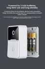 Description: Connection mode; Bluetooth &wifi Viewing angle: 60 ° Pickup distance: 3M Battery: 3 AAA batteries (excluding dry batteries, which need to be purchased by the customer) Storage Cloud Night vision lamp: 850n night vision lamp Doorbell size: 73*46*25mm Ding Dong machine size: 43*41*32mm Specifications: 1. Remote video calls can be easily handled without being at home After the visitor presses the electronic doorbell, the doorbell will push the notification to the mobile phone, and the host can enter the mobile phone video call interface, remote video, and view the door situation in real time 2. Two way call, intelligent voice change, girls feel at ease at home alone Two way voice design, with high-power speakers and high-sensitivity microphones, the visual call in front of the door is clear and smooth. Support voice change intercom, easily change boys, and easily deal with various situations 3. High definition wide-angle lens safety protection without dead angle With the new generation of wide-angle lens, you can have a panoramic view of the situation in front of the door, so that there is no "safety corner" left in the door, and multiple visitors can also see it one by one 4. Full encryption and automatic cyclic coverage of cloud storage Visitor records are saved in the cloud, and data encryption is more secure. You can view visitor records through mobile app anytime and anywhere, and you know the situation at home like the palm of your hand 5. The day and night dual-purpose camera can clearly display the night image Built in high-power infrared night vision lamp, combined with ICR infrared filter, can automatically switch day / night mode. Even in the dark environment where you can't see your fingers, you can see clearly and shoot clearly Package Included: 1 * doorbell camera, 1* indoor Ding Dong machine, 1*Adhesive sticker, 4* screw, 1* user manual Notes: This product uses three No.7 batteries, which customers need to buy separately