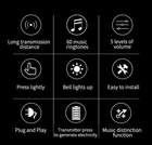 Wireless Doorbell No Battery required Waterproof Self-Powered 433mhz Door bell Sets Home Outdoor Kinetic Ring Chime Doorbell