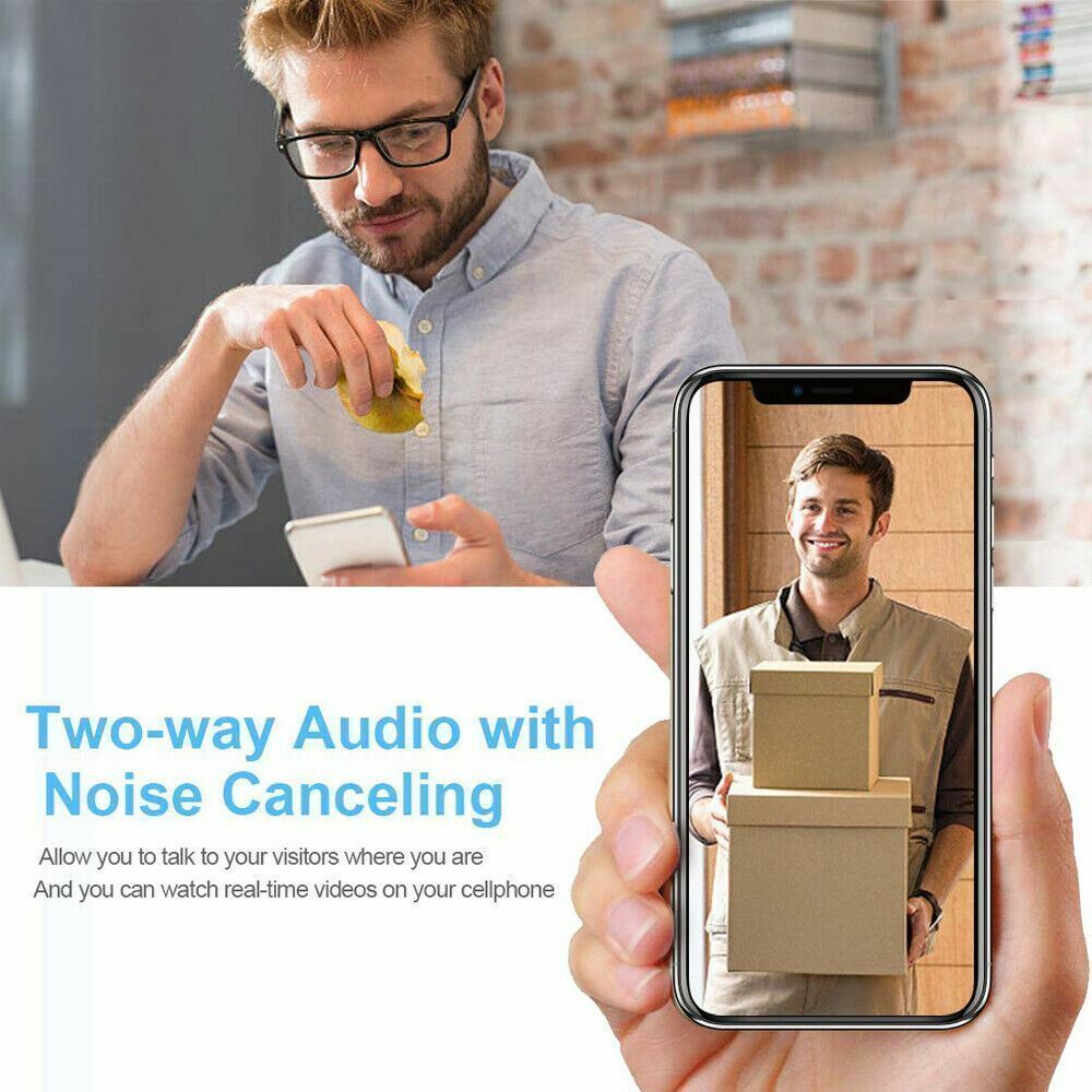 Product Description Wireless Smart WiFi DoorBell IR Video Visual Camera Intercom Home Security Kit Features: <> 【 Real-time Two-way Talk without Noise】See, hear and speak to anyone at your door in 166°wide-angle lens through an App that is compatible with iOS and Android. 【Smart PIR Motion Detection 】Detects the slightest motion in front of the door. Low, medium and high sensitivity within 11ft for you to choose. Get instant alerts when visitors press your Doorbell or trigger the built-in motion sensors. 【IR Night Vision】Equipped with IR sensor and LED, day or night, rain or shine, the camera can automatically switch the light to ensure you a crystal view. 【2.4G Wi-Fi Support】The doorbell only supports 2.4GHz for now, and it does not support 5GHz WIFI. No wires and cables are required, Simply download the APP and then connect it to your doorbell. 【Easy to Install & Service Guarantee】Equipped with a free 16G memory storage and an indoor dingdong chime.Compatible with iOS and Android mobile devices, and Mac and Windows PCs. Watch over your home in brilliant 720P HD video. Specification: SNR: > 390B Interlens Angle of View: 1.7mm F2.4/166 degrees Night vision: automatic switching of double filters, 6pcs 850 Nw 28Mn high-power infrared lamps, night vision 10 meters Resolution: 720P Speech: Two-way Talk, with Echo Cancellation Wireless Network: 802.118/c/N Wireless Network Security: WPS Security Encryption Wireless Connection: One-click WIFI Configuration Video Way: Mobile Detection Video, Door Bell Key Trigger, Manual Video Storage: TF card storage maximum support 32G (excluded) Power Consumption: Standby Current: 400uA. Working Current: 200MA Working environment: working temperature: - 10℃~ 50℃, working humidity < 95% Installation Method: door wall hanging installation Material: ABS Plastic + Electronic Components Color: Black or White Package includes: 1 x Doorbell (no batteries included) 1 x Screws Pack 1 x User Manual About Us Payment Shipping Contact Us We accept all verified payments from ebay. Orders will be shipped after receiving cleared payment. Payment due within 7 days after auction ends and for buy it now listings.