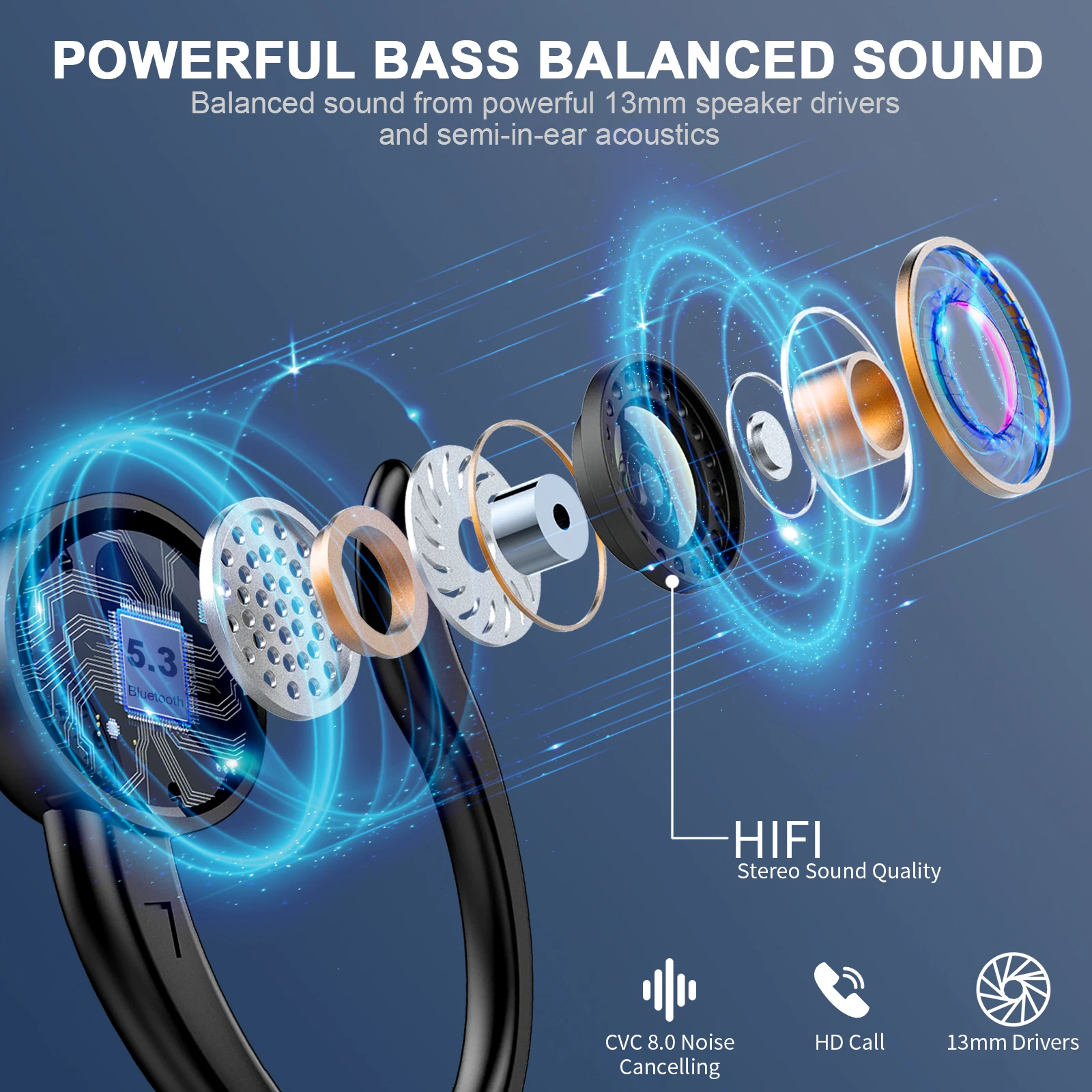 Wireless Sports Earbuds with Bluetooth 5.3, ENC Noise Cancelling Mic, and IPX Waterproof Rating