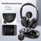 Listen in Peace: You will watch TV shows and movies at your preferred volume without disturbing those around you. Thanks to the 40mm audio drivers, the sound from BKM500 wireless headphones for TV are excellent with perfect clarity and high fidelity. Adjust the EQ mode according to your your preference (pop, rock and movie). Plug and Play: Pairing is very easy. The headphone and transmitter have been paired successfully at the factory, you only need to turn on the power and connect the transmitter to the TV, they will automatically connect successfully in about 3 seconds. This wireless TV headset be suitable to everyone who tired of complicated pairing. 3 connection options(Optical, RCA, 3.5mm), works with 99% TVs. Note: Please connect the transmitter to the TV, then pair the headphones with the transmitter to get sound. 35 Hours of Playtime: Playing time up to 42-45 hours at less than 70% volume(The louder volume, the faster battery consumption). You'll enjoy TV shows all night long without frequent charging. When the headphone needs to charge, you just place it onto the transmitter. Note: Please make sure the sliding arm is tightened before placing it into the charging dock to charge. Powerful Bluetooth 5.2: BKM500 achieves lower latency and power consumption based on Bluetooth 5.0, with ≤70ms latency(almost imperceptible). The battery of the BKM500 wireless TV headphones has a longer usage time and greater durability than ordinary headphones. Reliable after-sales service: We have a strong after-sales team. If you have any questions please feel free to contact us and we will reply ASAP. The package includes headphones for TV, transmitter, optical cable, 3.5mm cable, RCA cable, Type-c charging cable, and user manual.