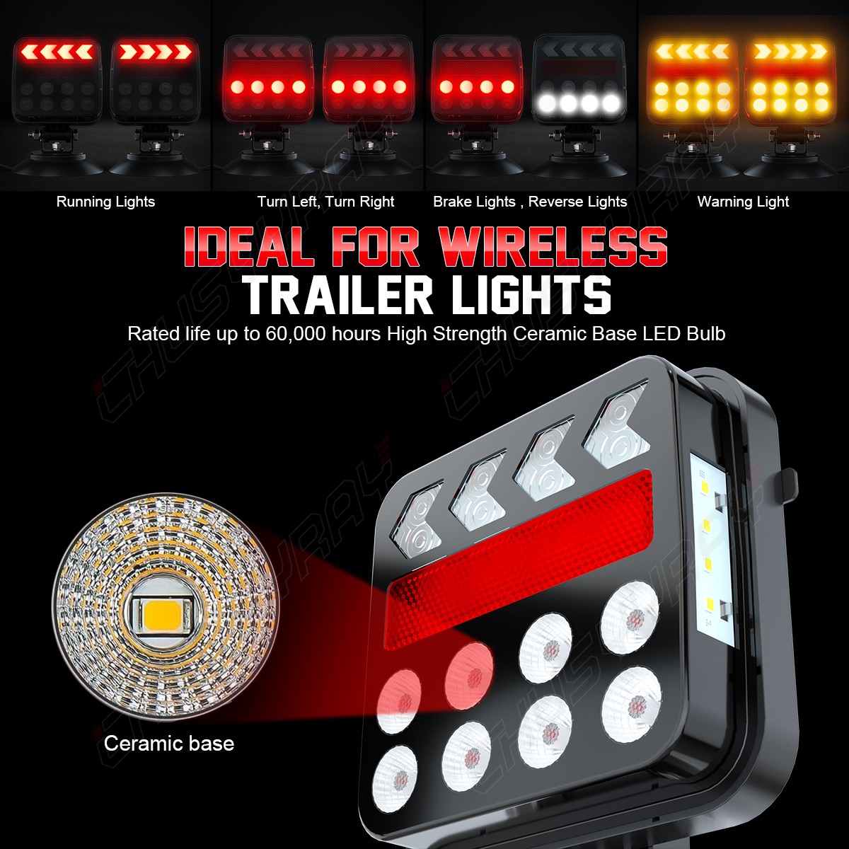 Experience next-generation towing safety with the USB-C Wireless Rechargeable Trailer Light Kit. Designed by a 15-member professional engineering team, this lighting system delivers exceptional performance through precise optical and structural research. Engineered for low energy use and high output, it offers a powerful combination of bright visibility, long runtime, and strong magnetic installation ideal for trucks, boats, RVs, and caravans. Features Stable Wireless Signals up to 100 Feet. Built-in antenna operates on a 2.4GHz frequency for uninterrupted signal transmission—ideal for extended towing setups. Adjustable Rubber-Coated Magnetic Mount. Easily installs on any metal surface like a truck bed or rooftop; holds securely even at speeds up to 50 mph. Fast USB-C Charging with Long Runtime. Charges in just 2.5 hours using the USB-C port and runs for up to 9 hours—no hardwiring required. Efficient and Ultra-Bright LED Output. Features ceramic base bulbs with enhanced heat dissipation, providing up to one mile of visibility and 60,000 hours of lifespan. Integrated Retroreflectors and Reverse Lights. Improve side and rear visibility from all angles while offering extra safety functions. Rugged IP67 Waterproof Design. Withstands temperatures from -40°F to 149°F, rain, and dust—ready for any environment. Engineered for Longevity and Reliability. Backed by a one-year warranty and expert support within 24 hours. Specifications: Charging Port: USB-C (DC 5V, 2000mA) Battery Capacity: 3.7–4.2V, 2600mAh Charging Time: Approx. 2.5 hours Runtime: Up to 9 hours Operating Temperature: -40°F to 149°F (-40°C to 65°C) Waterproof Rating: IP67 Material: ABS Base, PC Lens Visibility Range: Up to 1 mile LED Lifespan: Up to 60,000 hours Mount Type: Adjustable Magnetic Base Package Includes: 2 × Wireless Trailer Lights (Rechargeable) 1 × 7-Pin Round Signal Transmitter 1 × USB-C Charging Cable 1 × Car Charging Cable On Jan 21, 2026 at 01:07:32 PST, seller added the following information: