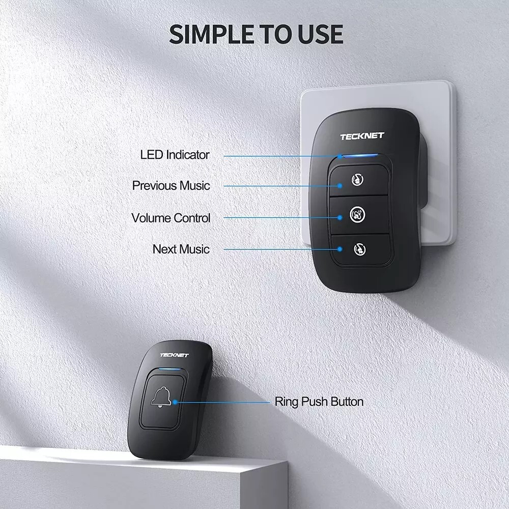 Looking for a convenient and easy-to-install doorbell for your home? Check out this wireless doorbell from TECKNET. With a remote waterproof plug-in design, this doorbell kit comes with a receiver and emitter, making it an ideal choice for your home. This doorbell also features LED lighting, a sleek black color, and is designed to be both lightweight and durable. Plus, with wireless connectivity, you won't have to worry about tangled cords or complicated installation processes. Get your hands on this TECKNET wireless doorbell today and enjoy an easy and convenient way to greet guests at your door.