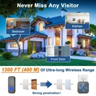 Wireless Doorbell,Waterproof Doorbell Chime Operating at 1300 Feet Loud Door Bel 1,300 Ft/400 M RADIO WIRELESS COVERAGE: the strong and stable wireless signal anti-interference with other devices in your or your neighbours' home, ensure that you're never to miss a visitor, even if you're a few rooms away or on another floor 55 CLEAR SOUNDS TO SELECT: The plug-in receiver offers rich and clear sound; 5 adjustable volume levels with a maximum volume of 110 dB; Different 55 melodies to meet various needs, the default is Ding Dong HIGH-PERFORMANCE TRANSMITTER: Ultra-low power consumption; the bell button operates 12V 23A batteries, which have up to a 3-year lifespan. IP55 dust and water protection level, operates in temperatures between -30 °C to 70 °C ensure it can withstand the harshest weather conditions EASY TO INSTALL & EXPANDABLE: wireless bell set can be easily installed by attaching the bell button to a wall without wiring; You could install it anywhere inside, for home, garden, office,store, mailbox etc. Shipping We offer FREE shipping on all orders! We ship within Three business days of payment, usually sooner. We use a selection of shipping services such as UPS, FedEx, USPS etc. We only ship to the lower 48 states, no APO/FPO addresses or PO Boxes allowed. Local pickups and combined shipping options are not provided at this time. Return You can return a product for up to 30 days from the date you purchased it. Any product you return must be in the same condition you received it and in the original packaging. Please keep the receipt. Payment We accept payment by any of the following methods: PayPal Please pay as soon as possible after winning an auction, as that will allow us to post your item to you sooner! Feedback Customer satisfaction is very important to us. If you have any problem with your order, please contact us and we will do our best to make you satisfied. Contact Us If you have any queries, please contact us via ebay. We usually respond within 24 hours on weekdays. Please visit our eBay store to check out other items for sale! Thank you for shopping at our store.