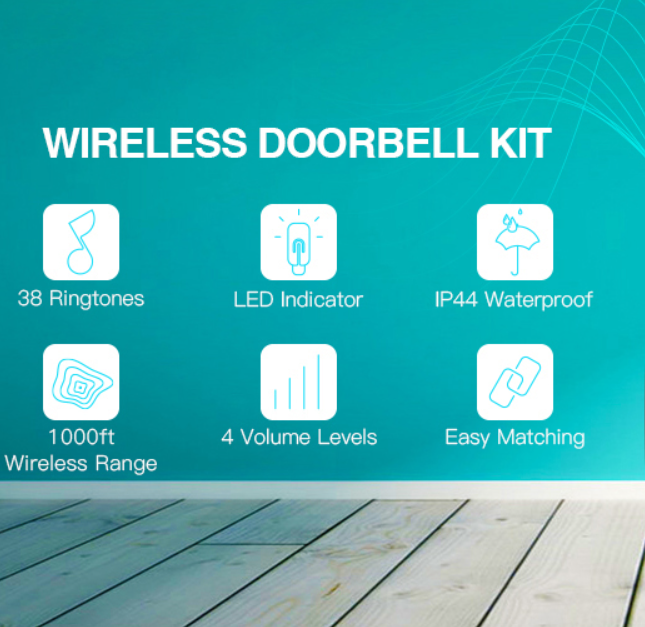 Operating at 1000ft Range with 38 Melodies to Choose, Adjustable Volume and LED Flash,1 Push Button(Battery included)&1 Receiver (Black) Easy to Install - J ust plug the mini receiver into a socket and fix the transmitter on a wall with the accessories provided; Includes 2 screws, 2 anchors, a battery, a double-sided tape, and even a screwdriver. Will not interfere with other equipment in your home or those of your neighbors, ensures you will never miss a visitor. This wireless doorbell set is by far the most convenient choice for your home and business. Waterproof & Robust Push Button - A stylish modern design in classic white, excellent materials keeps itself from getting higher temperature & interference. Waterproof & Dustproof, remote transmitter button is rated IP44 weatherproof. Works between -22 °F to 158 °F; withstand various harsh weather conditions, acceptable for outdoor use. Our door bells are certified with CE, RoHS, FCC. Ultra Long Operating Range - Operating range up to 1000ft / 300m in the open area, ensures you to hear and answer the doorbell in time. Either you are occupied a few rooms away or on another floor, in the garden or kitchen, you will always be easily informed when someone is calling from outside, never worry about missing visitors. Widely Applied & 38 Ringtones - A perfect wireless doorbell kit for home, apartment, school, villas, office, warehouses, hotel, factory, hospital and more. There are 38 different ring tones with 4 levels of adjustable volume from 25db to 85db. The stereo speaker delivers rich and crisp sound, easily choose and set your favorite tones as you wish; Flashing light indicators which are easy for people including the hearing impaired to notice.