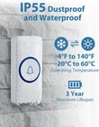 Wireless Doorbell - Waterproof with 1300 Ft Range and 52 Custom Melodies ‹ › ‹ › ‹ › ‹ › ‹ › ‹ › ‹ › ‹ › ‹ › Wireless Doorbell Your home deserves the best, and our Wireless Doorbell is designed to deliver both elegance and functionality with a perfect blend of innovation and style. Key Features: High Performance Transmitter: Ultra-low power consumption with a lithium battery boasting an impressive 3- lifespan. Weather Resistant: dustproof and waterproof design withstands harsh weather, operating flawlessly from -4 °F to 140 °F. 1300 FT / 400 M Wireless Range: Two plug-in receivers ensure you never miss a visitor, offering coverage across your home without interference. 52 Beautiful Melodies: Choose from 52 delightful chimes played through a rich 40 mm stereo speaker, with 5 adjustable volume levels peaking at a powerful 115 dB. Memory Function: Automatically retains your last melody and volume settings after a power outage—convenience at its finest! Easy to Set Up: Installation is effortless with included screws, anchor plugs, a key, and an adhesive patch, plus additional receivers can easily extend your coverage. Why Choose Our Wireless Doorbell? Imagine a doorbell that not only complements the beauty of your home but also provides you with unparalleled convenience. Our Wireless Doorbell combines durability and elegance, ensuring you are always aware of your visitors with beautiful melodies resonating through your home. Say goodbye to missed guests and embrace the effortless charm this doorbell brings. This is more than just a doorbell; it’s a statement piece that enhances your home’s ambiance while ensuring seamless communication. Elevate your entrance—order your Wireless Doorbell today! Shipping Free & Fast Shipping - We offer free shipping to most of the USA with a normal delivery time of 3-7 days. However, due to the current situation, additional delivery time (up to 3 weeks) may be required for some items. Alternative Carriers - We may use alternative carriers (e.g. USPS, FedEx, UPS, etc.) to ensure your package arrives safely and on time. Due to the use of multiple carriers, we are unable to provide a tracking number automatically. Handling Time - Orders are processed and shipped within 1-2 business days of receiving cleared payment. Shipping Restrictions - Shipping to Alaska, Hawaii, Puerto Rico, Guam, and other US territories may incur shipping charges or delivery restrictions. Please contact us before ordering, or your order can be refunded/cancelled. State Restrictions - There may be restrictions based on your state of purchase. For example, certain items may not be shipped to California due to state regulations. Contact for Tracking Updates - If you require tracking updates or have any concerns about the delivery of your order, please feel free to contact us, and we will be happy to assist you. Return 30-Day Hassle-Free Returns - We want you to be completely satisfied with your purchase. If you are not, you can return the item within 30 days of receiving it for a full refund or exchange. Easy Return Process - To start a return, simply contact us and we will provide you with a prepaid return shipping label and detailed instructions. Restocking Fee - There are no restocking fees for returns. However, the buyer is responsible for return shipping costs if the return is not due to a seller's error. Refund Processing Time - Refunds will be processed within 5 business days of receiving the returned item in its condition. Payment We accept all major credit cards, PayPal, and Apple Pay for your convenience. Your payment information is secure and encrypted to ensure a safe and seamless transaction. Please complete your payment within 3 days of purchase to avoid any delays in shipping. Feedback Your feedback is extremely important to us. We strive to provide the best products and customer service possible. If you are satisfied with your purchase, please take a moment to leave us a positive review. If you have any concerns or issues with your order, please contact us before leaving negative feedback. We are committed to resolving any problems and ensuring your satisfaction. Contact Us If you have any questions or concerns, please feel free to out to our customer support team. You can contact us through the eBay messaging system. We are available Monday to Friday, 9:00 am to 5:00 pm EST, and we will do our best to respond to your inquiry within 24 hours. Buy it now and enjoy a pleasant shopping experience! Voltage: 3 V Unit Quantity: 0.618 lb Material: Plastic Features: Waterproof,LED Flash,Memory Function,Adjustable Volume Power Source: Battery Items Included: Battery,Button,Screws,Plug-in Receiver,Transmitter,Anchor Plugs,Adhesive Patch,User Manual Suitable For: Home Type: Door Chime Connectivity: Wireless Number of Batteries: 1 Color: White Finish: Glossy Item Weight: 0.618 lb Style: Modern Button Material: Plastic Button Shape: Round Shape: Rectangle Power: 3 W Unit Type: lb