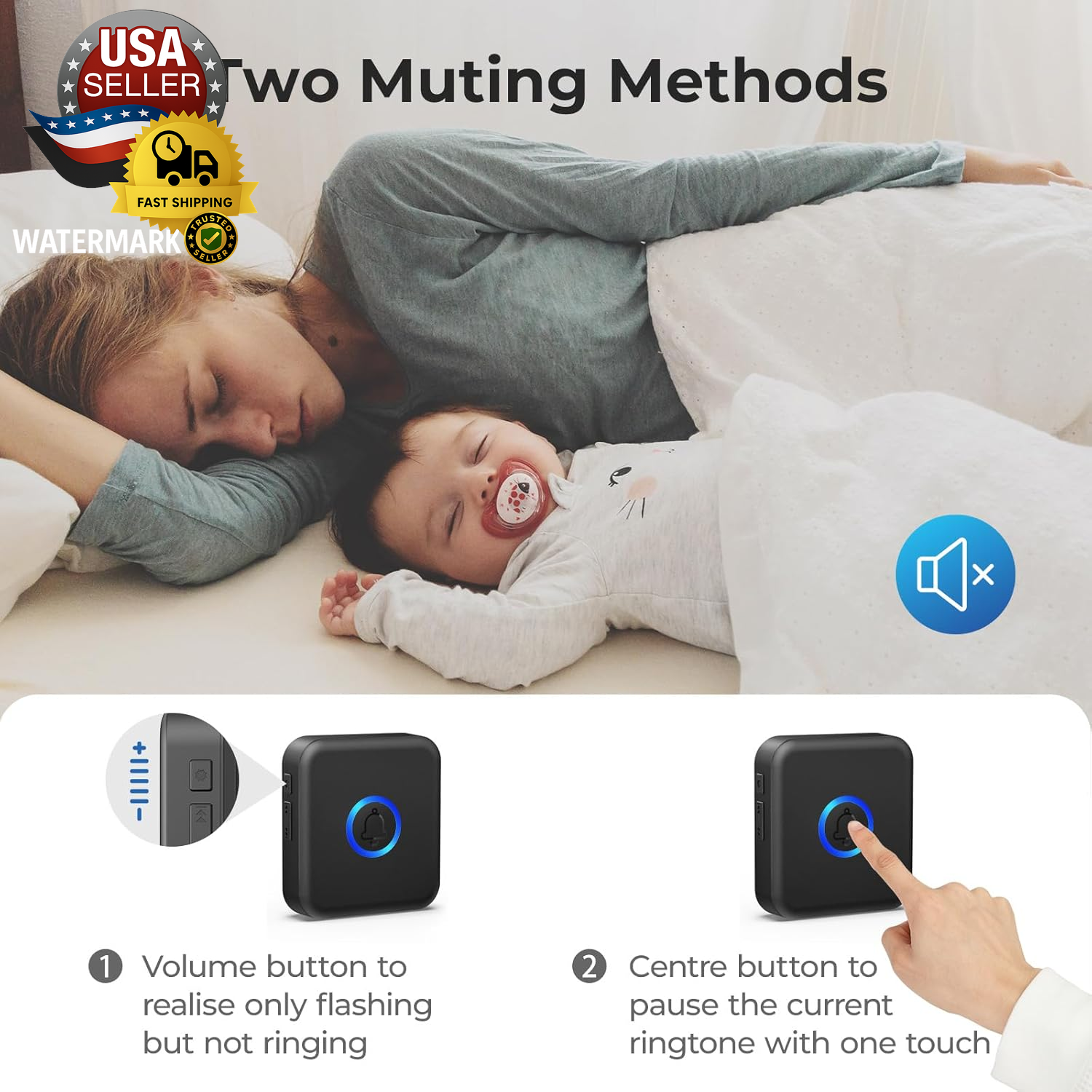 Wireless Doorbell, Waterproof Door Bell with 60 Chimes, 5 Volume Levels & 2 Mute Modes, Loud Doorbells Wireless for Home Classroom Office (1 Receiver & 1 Button, Black, American Plug) 【🎵Your Intelligent Wireless Doorbell】60 selected melodies to switch at will, the first ringtone preview mode, long press the button to listen to the prelude of each song for 2 seconds, easy to find your ‘welcome song’. 5-speed volume adjustment and mute mode, the baby's nap, the night rest will not disturb the family. 【🏡Boundless Guardian Precise Response】With a 1000-foot reception distance and a maximum volume of 110 decibels, the tone can be heard clearly in your apartment, office or classroom. For families, it's your guardian butler; for teachers, it can help keep your classroom quiet and focused. 【⚡3s to Complete the Installation】No wiring required! The receiver is plug and play, with stickers easily on the wall. Power Failure Memory automatically saves preferences, and still remembers your favourite Canon ringtone and comfortable volume after an unexpected power outage, just like having a caring electronic housekeeper. !!!Please note that our products are only suitable for U.S. plugs, if you use in other countries need to provide their own converter!!! 【🔋High-quality Protection】Stable operation from -4 °F to 140 °F, heavy rain, snow and sunshine, replaceable CR2032 coin cell battery with 3 years of long life (5 measurements per day), and IP55 waterproof button can withstand the wind and rain. Dual EU CE/US FCC certifications for safety and security every time. 【🛡️Professional After-sales Guarantee】If the doorbell kit for home have any problems during use, you can contact us directly through Amazon for after-sales service, we have a professional customer service team and experts to provide you with the pre-sales and after-sales service. FOVKSUC is always at your side! Product Description 1 Centre Mute Mode 2 60 Chimes 3 Memory Function 4 110dB Loud Enough Durable Waterproof Button The buttons are waterproof up to IP55, ensuring perfect use even in heavy rain, snow and scorching sun. It can operate between -4°F and 140°F. Long Operating Range 1000ft reception distance, whether it is a duplex or a single flat, even if on a rainstorm day and presses lightly, you can still hear the alert. Coloured LED indicators When the button is pressed, not only does the transmitter's indicator light up, but the LED on the receiver also flashes. 3 Years Battery Life The pushbutton transmitter uses a CR2032 lithium battery, which has an extremely long life of up to 3 years(5 measurements per day). The video showcases the product in use. The video guides you through product setup. The video compares multiple products. The video shows the product being unpacked. doorbell for home Merchant Video FOVKSUC Wireless Doorbell Kits Add to Cart Add to Cart Add to Cart Add to Cart Add to Cart Customer Reviews 4.7 out of 5 stars 989 4.7 out of 5 stars 471 4.7 out of 5 stars 471 4.7 out of 5 stars 471 4.7 out of 5 stars 471 Price $9.99 $ 9 . 99 $10.99 $ 10 . 99 $15.99 $ 15 . 99 $10.99 $ 10 . 99 $23.99 $ 23 . 99 Included Components 1 Receiver + 1Transmitter 1 Receiver + 1Transmitter 2 Receivers + 1 Transmitter 1 Receivers + 1 Transmitter 3 Receivers + 2 Transmitters Ringtone 60 60 60 60 60 Wireless Range 1000FT 1000FT 1000FT 1000FT 1000FT Power Source AC plug-in + CR2032 battery AC plug-in + CR2032 battery AC plug-in + CR2032 battery AC plug-in + CR2032 battery AC plug-in + CR2032 battery Automatically browse Function ✔ ✔ ✔ ✔ ✔ Memory Function ✔ ✔ ✔ ✔ ✔ Waterproof IP55 IP55 IP55 IP55 IP55 One-touch mute Function ✔ × × × × How to use Scrolling Play Function? You can save your time by long pressing the long button on the side of the receiver to automatically browse so you don’t have to push each time to change the chime sounds. How to reset? Hold down wireless doorbell receiver vol/setup button and plug it into an outlet, after playing the beep twice and LED indicator on, all settings will return to factory defaults. How to set a new tones for FOVKSUC doorbell? Press this Previous or Next button selecting the Chimes, Pressing and holding the Vol/Setup on the receiver for 5s,the receiver will LED indicator on,which means receiver get into pairing mode ,press the transmitter is ok. Is the transmitter of this doorbell suitable for use outside the door? The push button has a high waterproof rating of IP55, which is higher than ordinary doorbells, to ensure the perfect usage in rainy days. Works between -4°F to 140°F, withstands various harsh weather conditions. Is the wireless doorbell randomly chimes through-out the day without the button being mashed? The door bell uses interference suppression solution to ensure that if the doorbell button is not pressed, the receiver will not ringer by mistake. Item model number U2-B-1T+1R Battery Cell Type Lithium Manganese Dioxide Power Source AC & Battery-Powered Performance Description Wireless Doorbells for Home / Classroom Doorbell Switch Style Push button Batteries Included? Yes Average Battery Life 3 years Batteries Required? Yes Product Dimensions 3.15 x 2.8 x 0.8 inches Material ABS Type of Bulb LED Shape Square Installation Method Self-Adhesive & Screw-In Temperature Range -4-140 Degrees Fahrenheit Description Pile 1 CR2032 batteries required. (included) Is Discontinued By Manufacturer No Included Components 1 × Transmitter (battery included), 1 × Plug-in receiver(American plug only), 1 × Adhesive tape, 1 × Screwdriver, 2 × Screw, 2 × Anchor, 1 × User manual Item Weight 3.52 ounces Special Features Adjustable Volume Optional Ringtone and Scrolling play Part Number U2-B Color Black Accessory Connection Type Wireless Batteries 1 CR2 batteries required. (included) Voltage 120 Volts Plug Format A- US style Size 1 Receiver 1 Button Brand Unbranded Shipping Fast shipping is vital for us. Our standard US shipping service