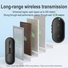 Slim profile mini wireless doorbell,does not interfere with other socket positions when inserted into the socket. 5 Call Buttons + 3 Wireless Musical Doorbell Receivers for Home Elderly Shop Call Black Wireless doorbell set for multiple doors in hospitals/villas/estates/large house Slim profile mini wireless doorbell,does not interfere with other socket positions when inserted into the socket. Weatherproof Doorbell & Easy Set Up - IP55 waterproof rating of the doorbell with a minimalist design and simple operation. It is very easy to install without wire, the button is attached to the exterior wall and the plug-in doorbell receiver is plugged in the socket and ready to use Ultra Reliable Launch Distance - 1,300FT reliable wireless signal coverage (Unobstructed space) anti interfering with your home electronics, ensuring you never miss your visitors or packages again, Durable and easy to obtain transmitter battery to ensure a superior user experience Various Bell Chimes & Adjustable Volume - 55 ringtones for different options, 5 levels of adjustable volume and clear melodies that can be heard even if you are in other room and floors away Loud Doorbell & LED Flash - The loud 110dB doorbell with flashing LED is designed for the hearing impaired and elderly, and can of course be set to 0 mute when you don't want to be disturbed Expandable - If you want to expand the doorbell system to your home, you can add a receiver and transmitter of the same model. Instructions on how to change your ringtone are on the details page or in the manual How to set the ringtone? How to change the battery? How do you adjust the volume? Are these doorbells waterproof? Is this doorbell easy to install How to set the ringtone? 1. Short Press the Backward or Forward Button to select your favorite music. 2. Long Press the Volume Button for 8s, until it makes a One Ding sound with LED flash. 3. Press the button within 8s, then it will make a Two Ding sound with LED flash. How to change the battery? Replacing the transmitter battery is a very simple procedure. Simply insert the small screwdriver supplied through the small opening at the bottom of the transmitter in a 45° and pry it open. How do you adjust the volume? Press the volume button on the receiver to adjust volume, there are 5 levels in total, the default is the maximum sound, press once to change one level cycle in turn. Are these doorbells waterproof? Normally, water resistance is no problem at all.IP55 dust proof and waterproof protection. Working temperature:-22 °F -158°F. Is this doorbell easy to install There are two simple installation methods: Method 1. stick the button on the exterior wall or door frame with the attached double-sided tape. Method 2. fix the button with the provided screws.