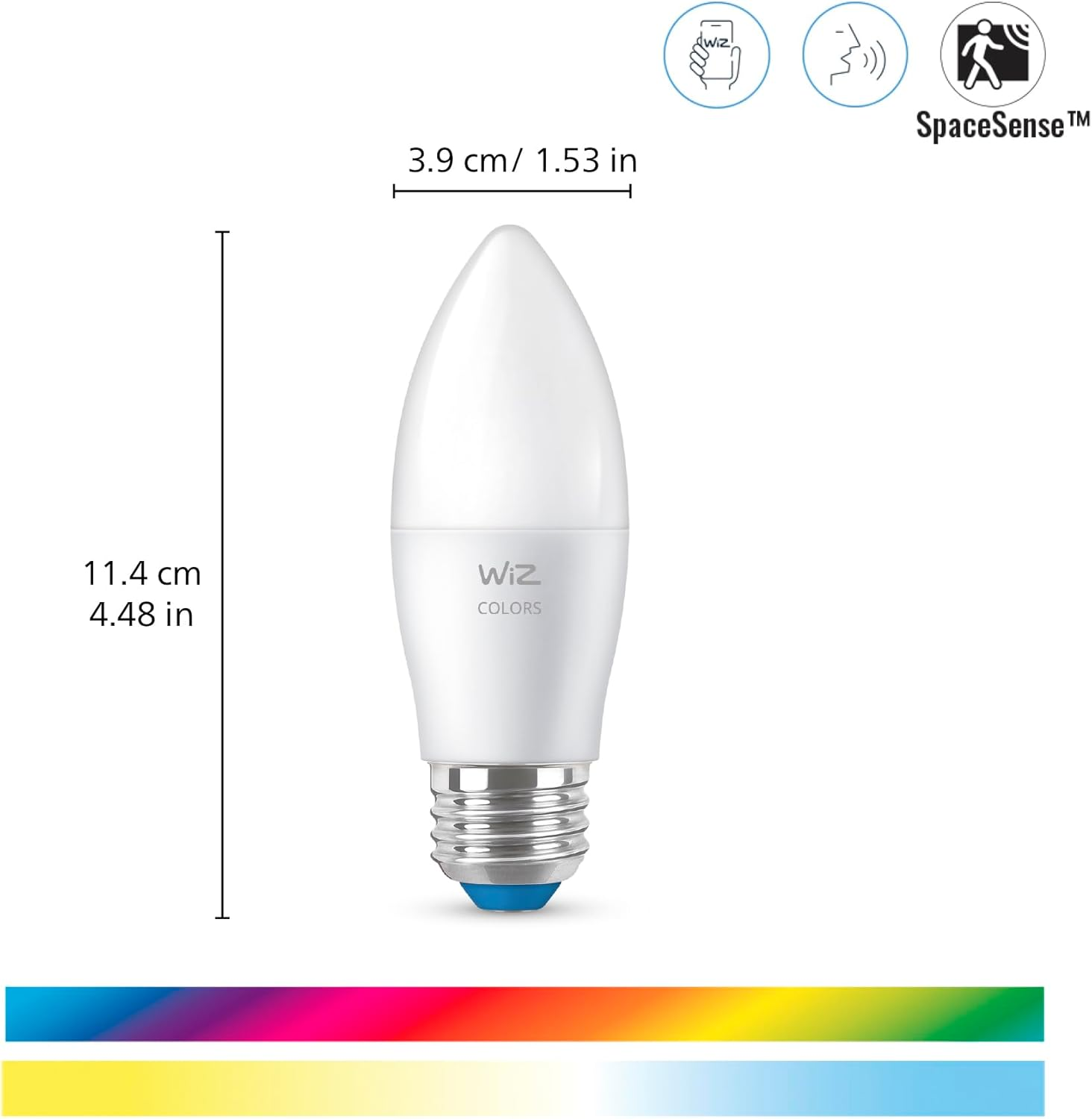 Store New Arrivals Add to Favorite View Feedback Contact Wiz 40W B12 Color LED Smart Candle-Shaped Bulb - Pack of 1 - E26- Indoor - Connects to Your Existing Wi-Fi - Control with Voice or App + Activate with Motion - Matter Compatible Description Light Source Type Led Item model number 604256 Style Tunable White Number of Items 1 Power Source Wireless Pattern Solid Control Method App, Remote, Voice Warranty Description 2 year manufacturer. Bulb Diameter 2.76 Inches Unit Count 1.0 Count Connectivity Protocol Bluetooth, Wi-Fi Light Type LED Bulb Shape Size A19 Average Life 25000 Hours Product Dimensions 2.76"W x 6.3"H Material Synthetic Polymer (PMMA) Frequency 60 Model Name WiZ B12 Color with E26 Cap Specific Uses For Product Home Included Components Remote Item Package Quantity 1 Indoor/Outdoor Usage Indoor Light Source Wattage 60 Watts Brightness 355 Lumen Country of Origin China Light Color RGB Batteries Required? No Item Weight 2.08 ounces Connectivity Technology Bluetooth, Wi-Fi Special Features Energy Efficient, Dimmable, Color Changing Special Feature Energy Efficient, Dimmable, Color Changing Color Rendering Index 604256 Part Number 604256 Color Temperature 6500 Kelvin Color Tunable White Wattage 10 watts Incandescent Equivalent Wattage 4E+1 Watts Bulb Base E26 Shape Candle(C) Power Consumption 3.9 Watts Size 1 Pack ACTIVATE WITH MOTION - With a minimum of two WiZ lights in the same room at least 2m/6.56ft apart you can activate SpaceSense feature in the WiZ Connected app and lights will turn on and off automatically when they detect motion - no sensors needed! 16 MILLION COLORS - The WiZ color LED bulb offers millions of colors to help you create the perfect lighting for any moment. Once you've found a favorite mix of color save your scene and select it anytime using the WiZ Connected app or your voice. HUMAN-CENTRIC LIGHTING - This candle-shaped bulb also allows you to choose from different shades of warm to cool light to create the best ambience for your activities. Not sure which is right? Simply select from preset modes like Focus or Relax. EASY TO SET UP - Start enjoying the benefits of the smart features instantly. Just screw in your new bulb download the WiZ Connected app, and connect to 2.4GHz Wi-Fi! No need to install additional hardware such as a hub or gateway. EASY TO USE - Adjust lights with your smartphone voice, the WiZ remote control, or by using your existing wall switch to toggle between two favorite modes. Works with Google Home, Alexa, and Siri Shortcuts. EASY TO AUTOMATE - Using the WiZ Connected app you can schedule your lights to automatically turn on and off, dim, or change color according to your daily or weekly routines. Even when you're not at home, you'll always have access. EASY TO MONITOR - The Wiz Connected app can also provide an overview of the energy consumption of your lights. Easily access a historical view live view, or reports on energy usage by hour, day, week, room, or device. MATTER COMPATIBLE - Matter is a unifying protocol for smart homes to further improve simplicity compatibility, reliability, and security across smart home products. It simplifies smart homes for all stakeholders. PLC 3.9W (40W)B12 WIFI COLOR 1PK ABOUT US We offer the best prices around on high quality products. Our E-store includes media such as books, movies, music and games while offering electronics, toys, sporting apparel, clothing, tools, general home, garden items and more. SHIPPING We are always working hard to ensure your package arrives as soon as possible. Please understand that some factors like weather, high postal traffic, and the performance of shipping companies are outside of our control. We offer free shipping to the lower 48 states and ship within 2 business days of payment, usually sooner. We do not accept P.O. Boxes. Please provide a physical address. For shipping outside of the continental USA, we only use eBay's Global Shipping Program.The item is shipped to KY and then sent to the rest of the world. International customers are responsible for all duties and taxes. Continue to check out in order to calculate costs for shipping the item to your country. Messages regarding eBay's Global Shipping Program MUST be directed at eBay EXCLUSIVELY. RETURNS We offer a 30-Day Return Policy on items which you are not completely satisfied with. You have the option for a full-refund or an exchange of the item. No returns are available on items shipped outside of the USA. PAYMENT We accept PayPal. CONTACT US This page content is yet to come Please ad us to your favorite seller and visit again later Thank You CUSTOMER SATISFACTION We try our very best to make sure every customer is completely satisfied. If there's a problem, message us! We're happy to help. WE ACCEPT Copyright © 2021 AutoDS. | All Rights Reserved