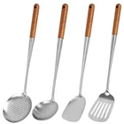 Package Content: The wok utensils set contains a ladle, slotted spoon, spatula and slotted spatula, 17" length, meeting the basic needs of users for cooking utensils High Quality: Crafted from 304 stainless steel and wood handle. It won't easy to have dent, rust, or fall off, offering long-lasting durability, and is resistant to oxidation and corrosion Wooden Handle: The handle is crafted from wooden material, and ergonomic designed. This design ensures a comfortable and pleasant user experience Easy Storage: Our stainless steel wok tools comes with a hanging hole to save space and keep your kitchen organized and clean Perfect Gift for Cooking Enthusiasts: An excellent gift for loved ones who enjoy cooking or are chefs themselves