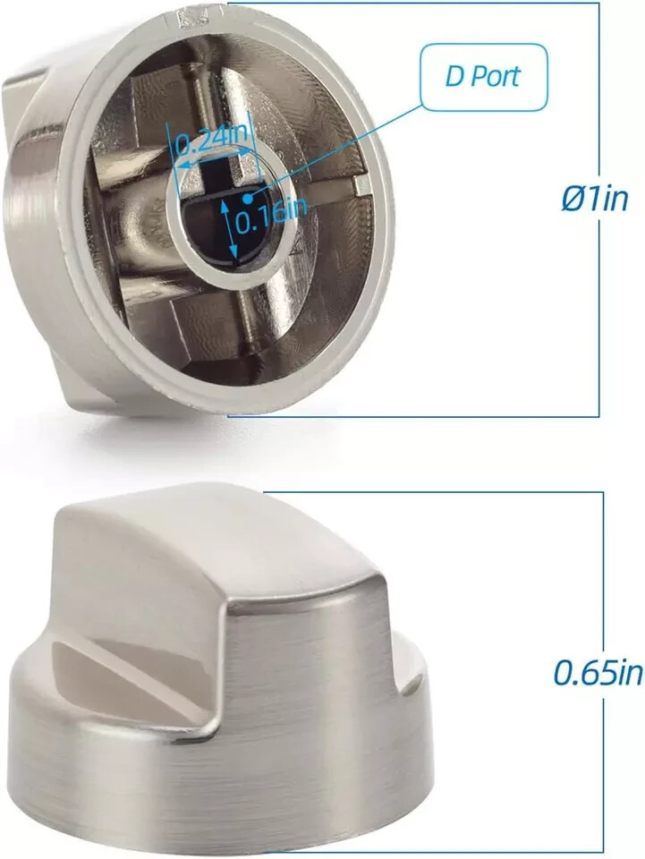 About this item 【wolf vent hood knob 】(2 Pack )811195 Ventilation Hood Knob Perfect Replacement for 56 models of Wolf: This part is also known as 811195, 805328, KIP5D44, 5D44, B002MFNQ34.- Knob Dimensions 1" L x 1" W x 0.65" H, Mounting Hole Diameter: 0.24(6mm)"." D" design: 0.17 inch/0.43 cm in interface 【wolf stove knob replacement】The knob fits the switches in the Wolf series. Known compatible models:1543418, 1663418, l282212I, P1363418, P1423418, PL342212, PL402212, W482718, PW302210, PW362210, PW422210, PW482210, PW302418, PW3642418, PW422418, PW662718, PWC362418, PWC422418, W402212, L462212, L522212, L582212,and more !! 【upgraded design wolf range knobs】According to the feedback of many users, the material stainless steel is not heat-resistant and very hot, but our 811195 Wolf Hood Knob compatible Sub-Zero Wolf Range Knob has been improved in the material, made of high-quality ABS plastic and electroplated nickel, with the texture and luster of stainless steel, with heat resistance, wear resistance, pressure resistance, reinforcement D-shaped holes, and other characteristics. And it has a long service life 【 range replacement knobs applicable】This replacement hood knob is for Wolf ventilation systems with issues such as the knob falling off of the Pro Ventilation Hood or broken or lost hood knobs or knob inserts. 【wolf knobs fix the following symptoms】The selection will not be set; It will not turn; It will not stay. Just take 2 minutes-no no issues at all installing and the fitment is tight and locks up properly. 【About our service】If you have any questions about our compatibility with Sub-Zero Wolf Range knobs, please get in touch with us, Whether it's pre-sales or after-sales, we will give you a satisfactory answer within 24 hours! product quality and service are our top priorities.[Note: Non-OEM products, specifications that guarantee to exceed OEM high quality, Any use of any brand name or model designation for this product is made solely for demonstrating compatibility.