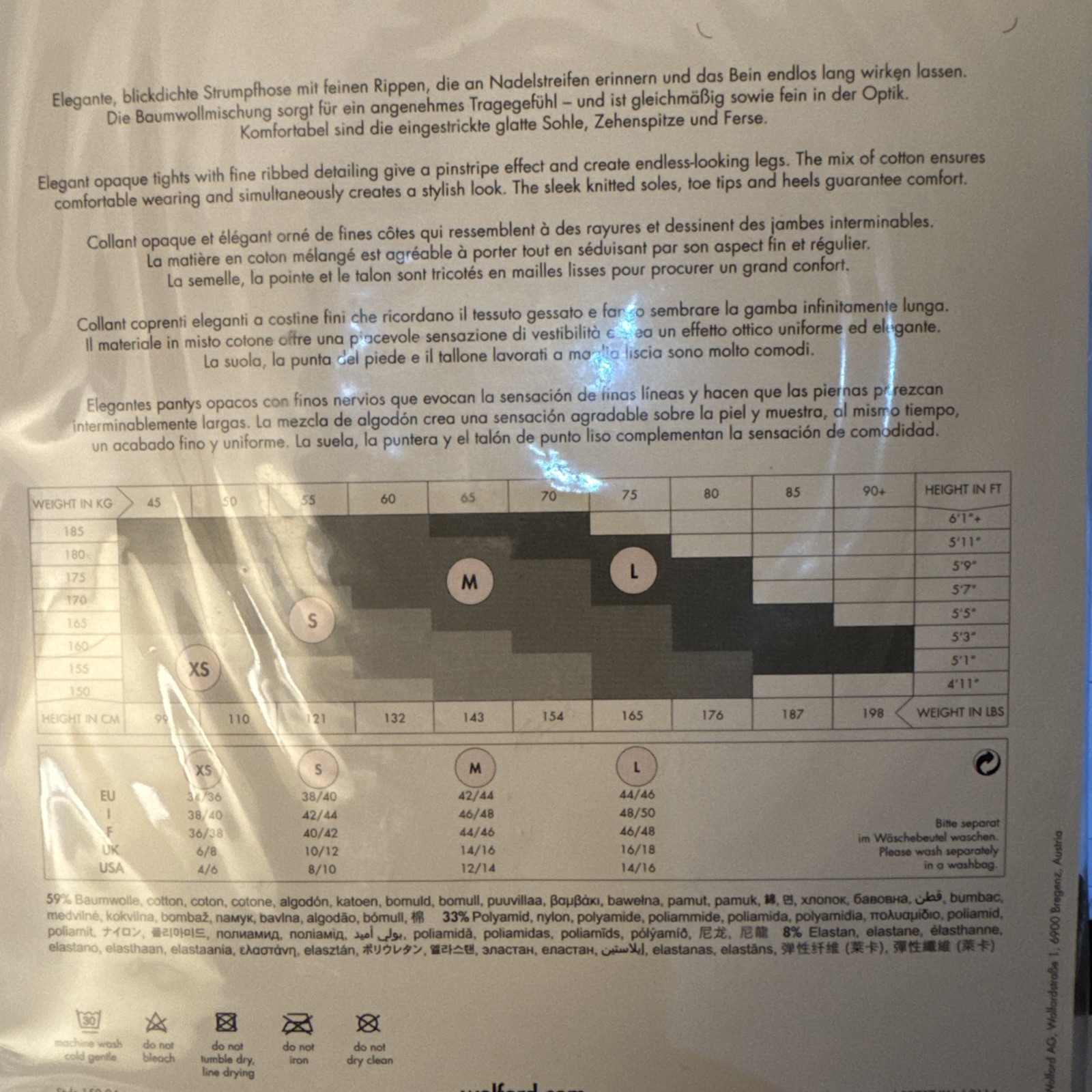 Wolford Fine Cotton Rib Tights Elegant opaque tights with fine ribbed detailing give a pinstripe effect and create endless-looking legs. The mix of cotton ensures comfortable wearing and simultaneously creates a stylish look. The sleek knitted soles, toe tips and heels guarantee comfort. We offer combined shipping for hosiery items. Each additional pair is: $1.99 for USA Domestic Shipping 4.99 International shipping (outside of the USA.) Note: We do not have any control over VAT, Duties, Taxes and any other charges at your local customs agency. STOCK 15004 - 12 DIN 2026-02-21 Commitment We are committed to making sure that you leave this transaction satisfied. That means having access to real people that get your questions and concerns answered quickly. Give us a shot and we will make sure that you will look to us again! Quality Products Have peace of mind knowing that we offer the highest quality and most products will arrive in their original factory sealed packaging. Items are stored and shipped from a Smoke Free Environment. Fast Shipping You're already purchasing the item. We get your order shipped out and delivered to your doorstep as quickly as possible.