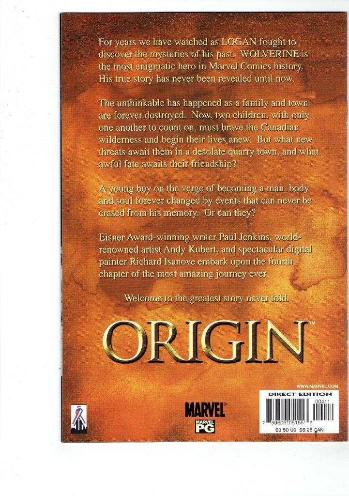 THIS LISTING IS FOR Wolverine: The Origin #4 Grade: Very Fine/Near Mint -Spine ticks *GRADING* I am not a professional grader. The grade given is my opinion. I do my best to be accurate with my description, but please see scans/photos to make a decision for yourself -WE DO NOT USE STOCK IMAGES. All scans and pics are of the actual comic you will receive unless otherwise noted. -All comics ship with their own BAG & BOARD Payment Auctions: Please pay within 7 business days of auction end NO "ADD TO CART" OPTION??? TRY SHOPPING ON EBAY.COM Shipping CANADA 1st Comic: $4 each additional comic ships for 50cents U S A 1st Comic: $7 each additional comic ships for 50cents ------------------------------------------- INTERNATIONAL SHIPPING We only ship to International Destinations with tracking. Please contact us for a quote as costs vary greatly depending on the destination Contact Us If you have any questions or concerns please don't hesitate to send us a message through eBay's messaging system Images sell! Get Supersized Images & Free Image Hosting Create your brand with Auctiva's Customizable Templates. Attention Sellers - Get Templates Image Hosting, Scheduling at Auctiva.com. Track Page Views With Auctiva's Counter