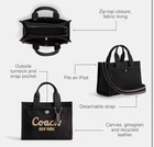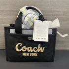 This Coach cargo tote is a must-have for any fashion-forward woman. With its spacious interior and multiple compartments, it's perfect for carrying all your essentials on the go. The exterior is made of high-quality materials in a stunning multicolor design that will surely turn heads. The crossbody style and adjustable strap make it easy to wear and it's perfect for any occasion. This bag is ideal for anyone who wants a stylish and functional accessory that's sure to last for years to come. • Editor's Notes: Carry as much (or as little) as you like with our lightweight Coach Cargo Tote 26. Detailed with our iconic turnlock closure, this spacious carryall has an open interior with room for an iPad • Canvas & Recycled Leather: Crafted to last, this versatile totebag for women and men is made with cotton sourced from farms that use regenerative agricultural practices and inspired by our commitment to reducing our impact on the planet • Style Three Ways: Carry it by the top handles or wear on the shoulder and crossbody with the detachable strap • It's All in the Details: Zip-top closure, fabric lining, handles with 4" drop, outside turnlock and snap pockets, detachable strap with 24" drop for shoulder or crossbody wear Fits an iPad. 10 1/4" L x 7 3/4" H x 5" W • This is COACH: Having the courage to be real since 1941. COACH is the Original American House of Leather - with a legacy of craft and a community that champions the courage to live authentically