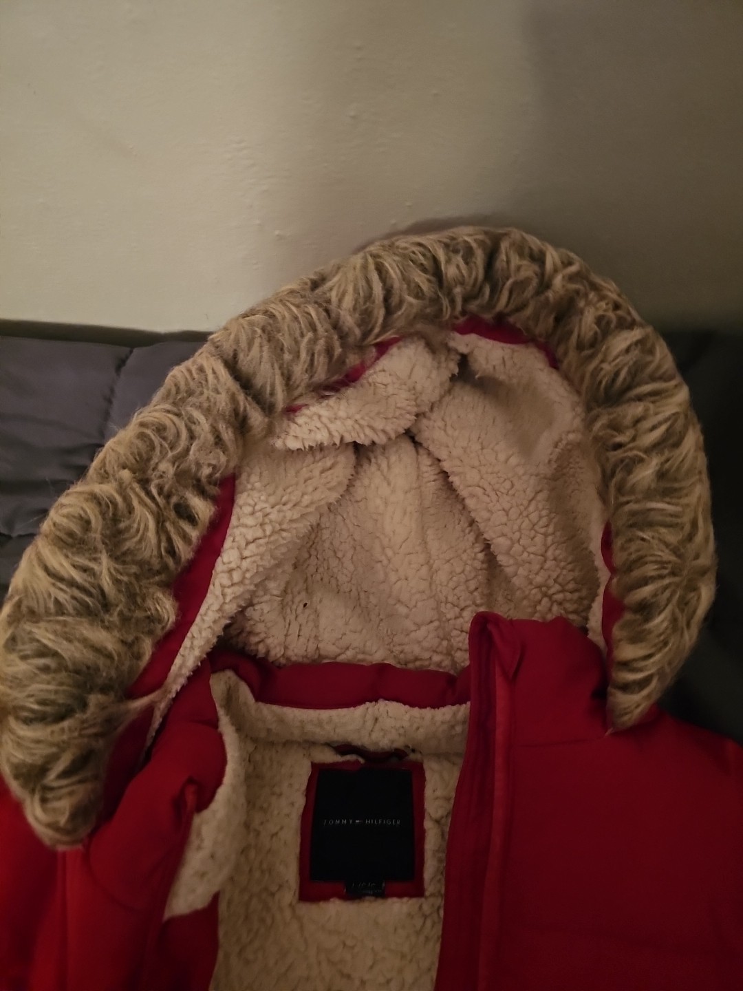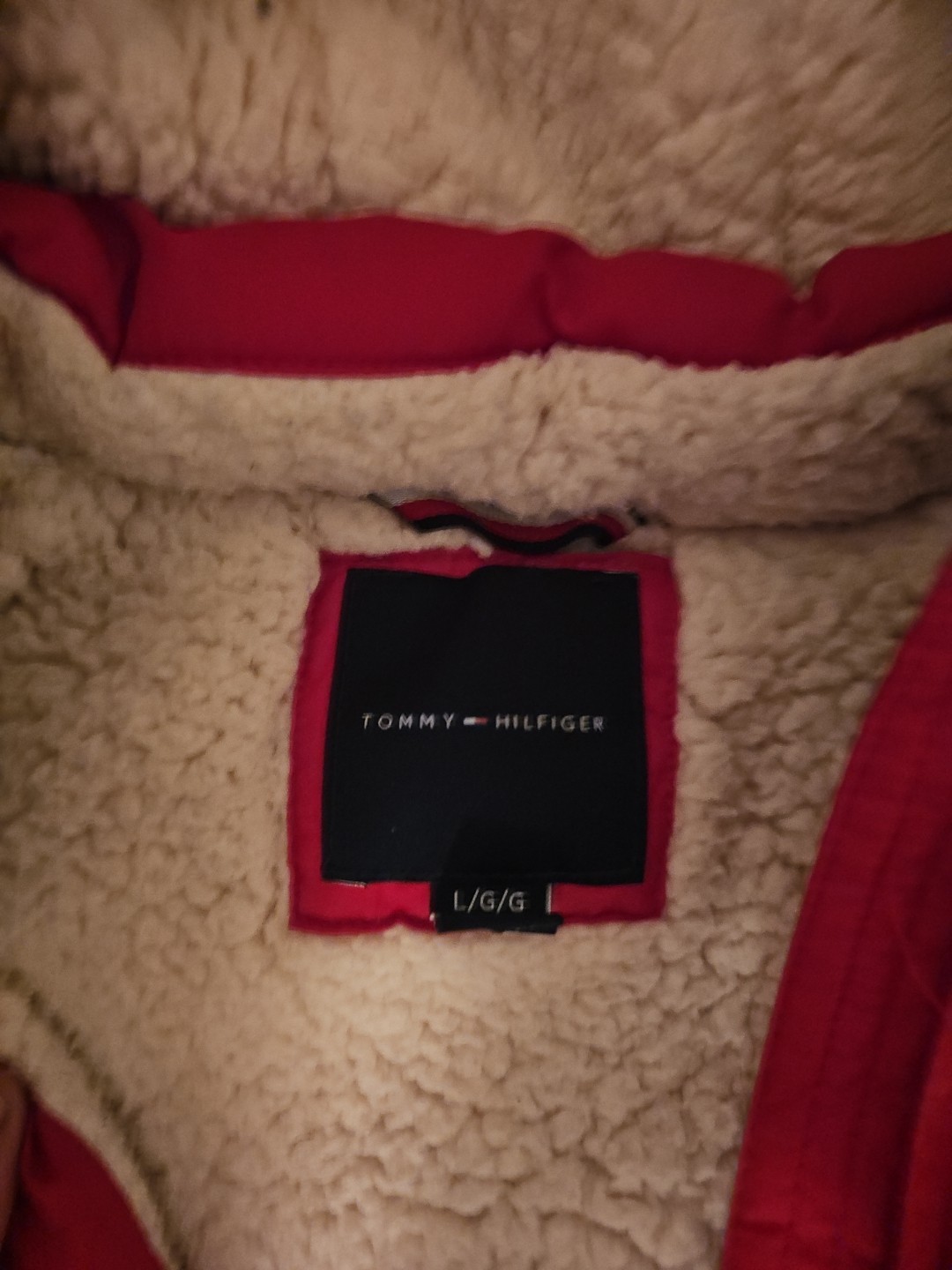 The Women's L Tommy Hilfiger Coat is a stylish mid-length jacket with a red color and a classic quilted style. Made of polyester, this coat features a zip closure and is machine washable for easy care. It is ideal for casual occasions in the winter season, providing a comfortable fit for women who wear a size L. The Tommy Hilfiger brand ensures quality and timeless style, making this coat a versatile and practical addition to any wardrobe.