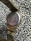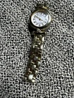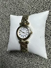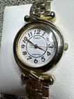 This beautiful Timex wristwatch for women features a stunning yellow gold tone case and bracelet. The white dial adds a touch of elegance to the overall design. It's perfect for any occasion and will make a great addition to any jewelry collection. The watch is round in shape and made with high-quality stainless steel for durability. It's a great gift for someone special or to treat yourself.