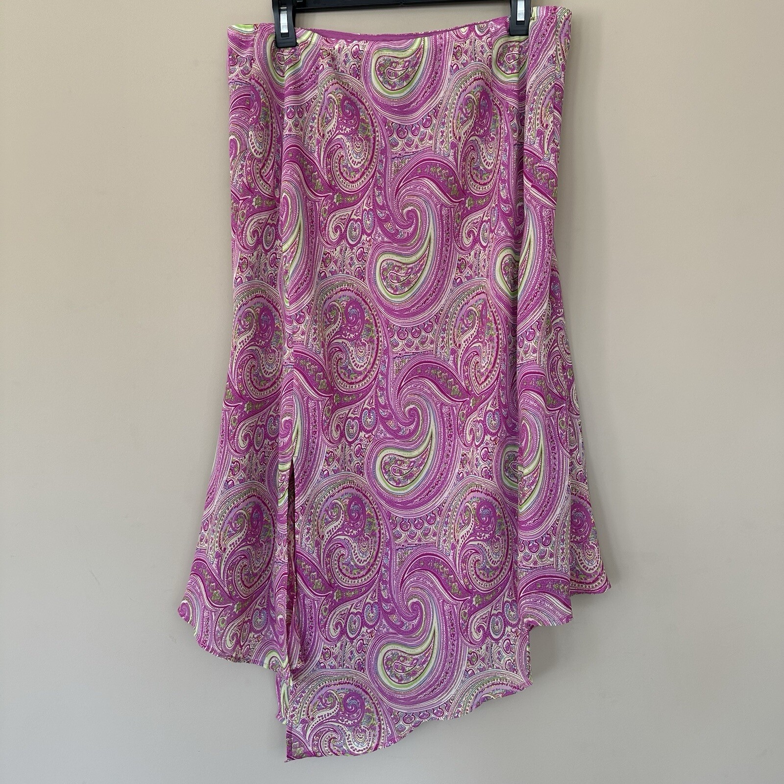 Women's size 14/16 Y2K Pink Paisley handcerchief fairy skirt Lane Bryant Flowy Slits Asymmetric Pull On, elastic waist lined excellent condition tags: feminine barbiecore girly 90s Spring Easter Summer ruffle layered approximate measurements lying flat length: 34" at the longest, 27" at the shortest straight across the stretchy waist: 16.5" 📦 Packaged with care 📬 I will ship it out within 2 business days 🙂 Smoke free home ♥️ Offers welcome.