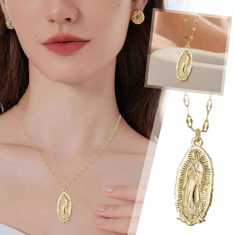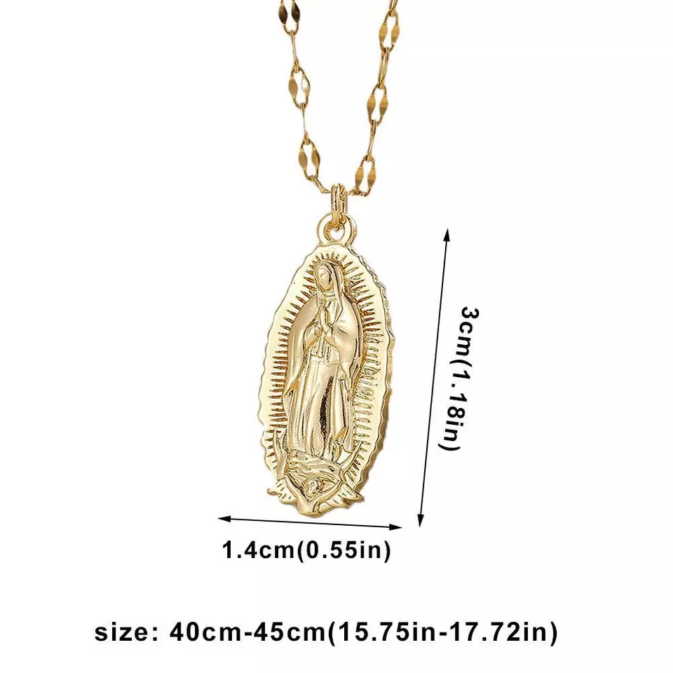 Women 14k Gold Plated Charm Pendant 18" Figaro Necklace Women's Day Gift HOT USA Description 1. Religious significance •Symbol of faith: The Virgin Mary necklace is an important symbol of Catholic and Christian faith, representing reverence and prayer for the Virgin Mary. •Protection and Blessings: Many believers believe that wearing a necklace of the Virgin Mary can bring protection and blessings, enhance inner peace and security. 2. Exquisite design •Exquisite craftsmanship: The Virgin Mary necklace is usually made of high-quality materials and exquisite craftsmanship, with very fine details. •Widely worn in 3 occasions 3.Daily wear •The simple design is suitable for daily wear, both fashionable and dignified. 4 Special occasions •Wearing it during important religious and life ceremonies such as weddings, baptisms, and confirmation ceremonies has special significance. 5.Gift OptionsIdeal Gift •The Virgin Mary necklace is an ideal gift for family and friends, especially for those with religious beliefs, it holds great significance. •Commemorative significance: Suitable as a souvenir for important occasions such as birthdays, wedding anniversaries, graduation ceremonies, etc. Item specifics Product Name: Virgin Mary Necklace Weight:50G Material: Copper, electroplated Target audience: General Circumference size: 40-45cm Pendant size: 3cm * 1.4cm Package 1* Virgin Mary necklace