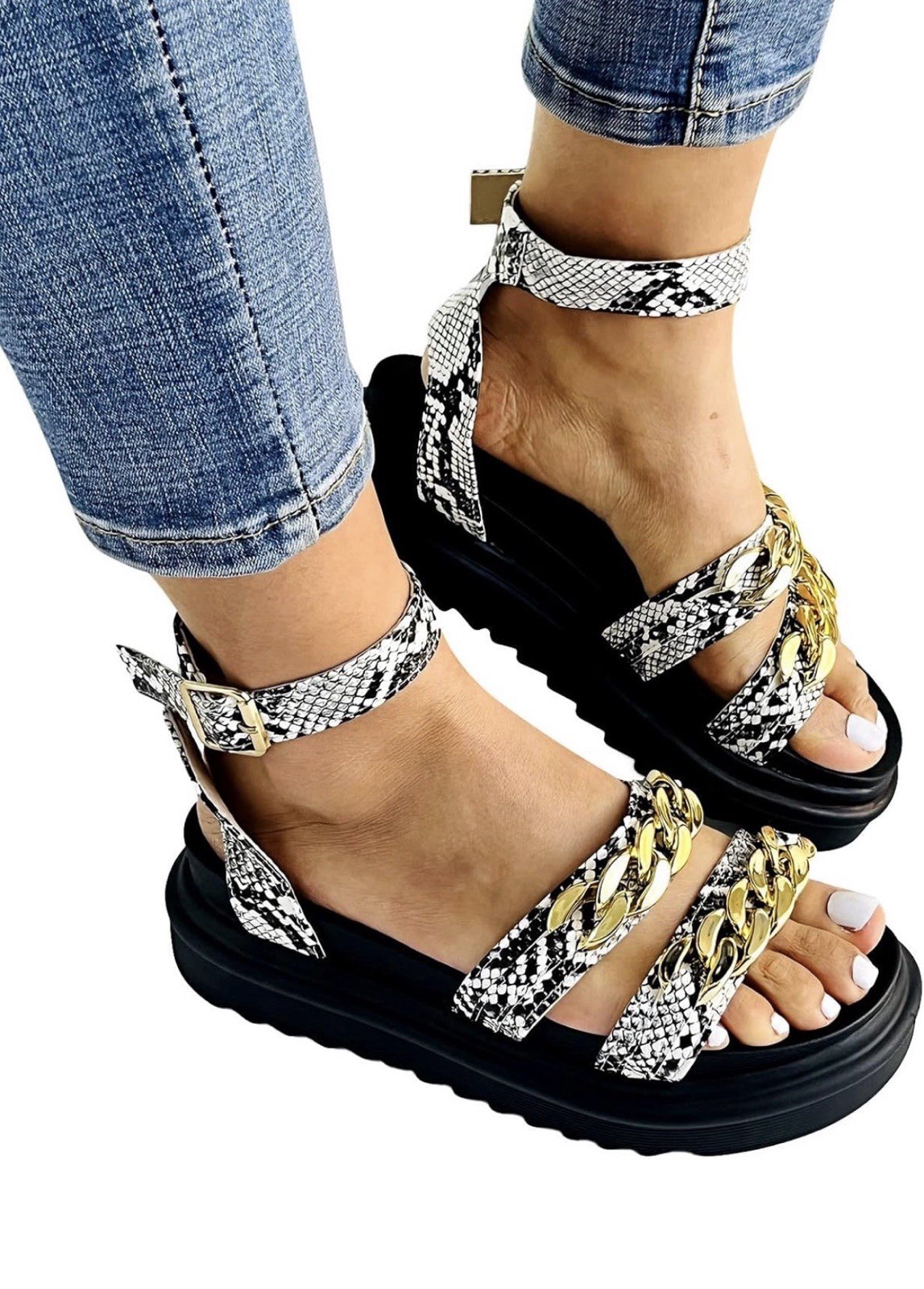 $ 34.32Dual Double Buckle Open Toe platform Bottom slip on sandals adjustable wide