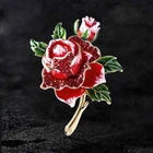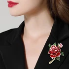Women Elegant Luxury Red Roses Rhinestone Brooches Pins Exquisite Noble Jewelry