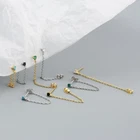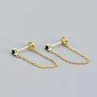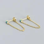 Adorable Round Shaped studs for everyone! Great gift for self rewarding or for your loved one, family, friends. CZ chain earrings, lightweight and easy to wear. This dangle Earrings are made of 18k gold plated S925 Sterling Silver. So they are waterproof, nickel-free, lead-free, cadmium-free and hypoallergenic, which will not turn your skin green or cause anaphylactic reaction. --------------------------------- DETAILS - CZ Part Size: 3.5x3 mm - Chain length: approx. 40mm - Material: Titanium, Gold Plated - Hypoallergenic: Yes - Color: Blue/Green/Black/White - Finish: Gold/Silver --------------------------------- CARE - Please avoid exposing your jewelry to water. - Keep them away from any oils, lotions or perfumes. - Remove before working out and at bedtime. --------------------------------- NOTE - The earrings are sold in pairs. - If you have any questions, please contact me at any time.