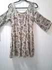 Adorable preyond good condition, ni. High dress or can wear leggings with it. A 3/4 sleeve with bell sleeve on bottom peekaboo shoulder on top Paisley design. So cute and it's lined pitch. You pitupac measures 20 inches length is 33 inches from shoulder to bottom