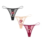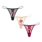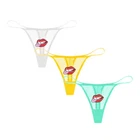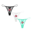 Women Lace Panties Sexy See Through Low-Rise G-string Lip Stickers Thong 3Pcs