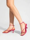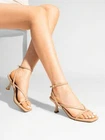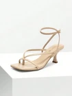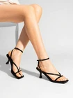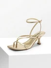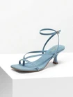 Women Kitten Heel Sandals Open Square Open Ankle Strap Thong Sandals