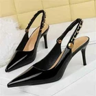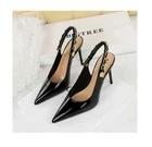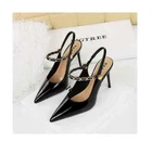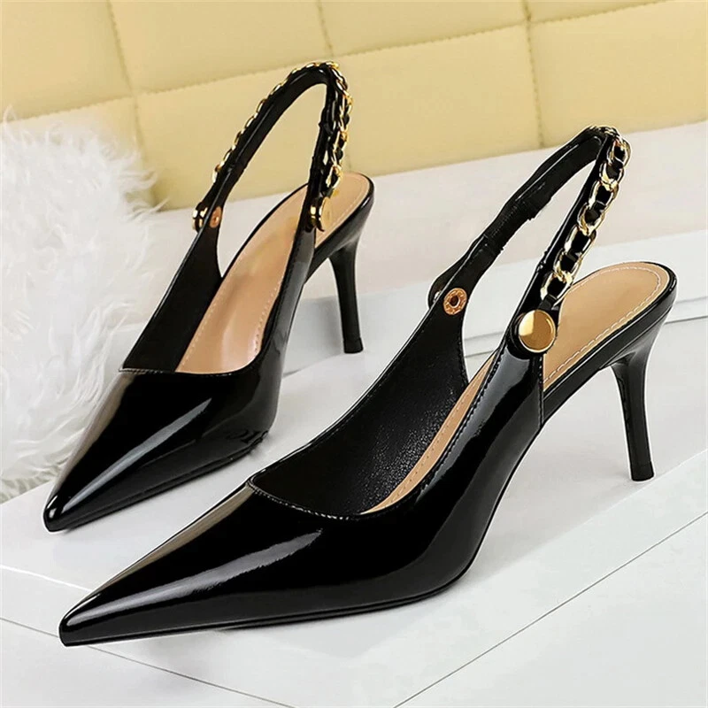 $ 17.22JustFab Jaslene Stiletto Lock Heels 8 New Black Pointed Toe Ankle Strap Shoes