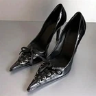 $ 17.41silver clear 4.5” toe ring stiletto heels size 6