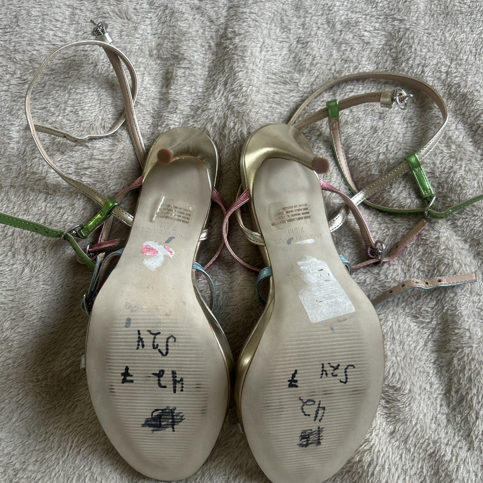 These Women Steve Madden multicolor strappy high heel shoes in size 7.5 offer a stylish and trendy option for any outfit. The brand's reputation for quality and on-trend design ensures that you're getting a fashionable shoe with a comfortable fit. The multicolor design adds a fun and vibrant touch to your wardrobe, while the strappy style and 4.5" heel height give you a touch of sophistication and glamour. Perfect for any occasion, these shoes are sure to make a statement.