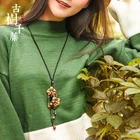 Women Vintage Wood Chip Necklace Pendant Sweater Chain Handmade Retro Necklace
