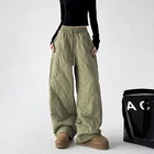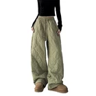 JUSTA PETRA Olive Green Cargo Parachute Pants Drawstring Waist Baggy Adjustable