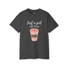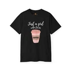 This Women's Coffee Lover T-Shirt features a classic fit and round neck, providing comfort and style for every coffee connoisseur. With its playful graphic print, show off your love for coffee with this must-have addition to your wardrobe. Perfect for any casual outing or cozy day at home. Overview: This ultra cotton tee is a classic. Quality cotton construction means that designs are sure to shine. The shoulders are tapped for a good upper body fit. There are no side seams, ensuring a clean, unbroken flow. The collar has ribbed knitting for improved elasticity. The materials that went into this product are sustainably sourced and economically friendly. Fabric: This tee is an excellent, all-season wear thanks to its medium fabric (6.0 oz/yd² (203 g/m²)). Made with 100% US cotton, this tee guarantees long-lasting comfort and style Fit: The classic fit along with the crew neckline make it a highly versatile choice for casual and semi-formal occasions as its neat, clean looks can blend in any setting and are perfect for accessorizing. Fabric Blends: Ash Grey - 99% cotton, 1% polyester, Heather Colors & Safety Colors - 50% cotton, 50% polyester, Antique Colors & Sport Grey - 90% cotton, 10% polyester