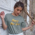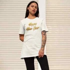 Introducing our Women's New Year Season Special T-Shirt. With a comfortable half sleeve design and round neck fit, this shirt is perfect for any occasion. Made with quality materials, you'll love the comfort and style of this must-have wardrobe essential. Upgrade your wardrobe today with our Women's T-Shirt. SIZE GUIDE: FOR OVERSIZED LOOK PLEASE CHOOSE TWO TO THREE SIZES UP THAN YOUR USUAL SIZE DEPENDIND ON YOUR CHOICE. Overview: Comfort Colors introduces the “Comfort Colors 1717” garment-dyed t-shirt; a fully customizable tee made 100% with ring-spun cotton. The soft-washed, garment-dyed fabric brings extra coziness to your wardrobe while the relaxed fit makes it an excellent daily choice. The double-needle stitching throughout the tee makes it highly durable while the lack of side-seams helps the shirt retain its tubular shape. Fabric: The Comfort Colors 1717 tee is made with medium fabric (6.1 oz/yd² (206.8 g/m²)) consisting of high quality, 100% ring-spun US cotton for long-lasting comfort. Fit: The relaxed fit keeps the wearer comfy in both casual and semi-formal settings while the crew neckline delivers that classic, neat style which makes it perfect for accessorizing. Fabric blends: The garment is dyed after it's been constructed, giving it a soft color and texture.