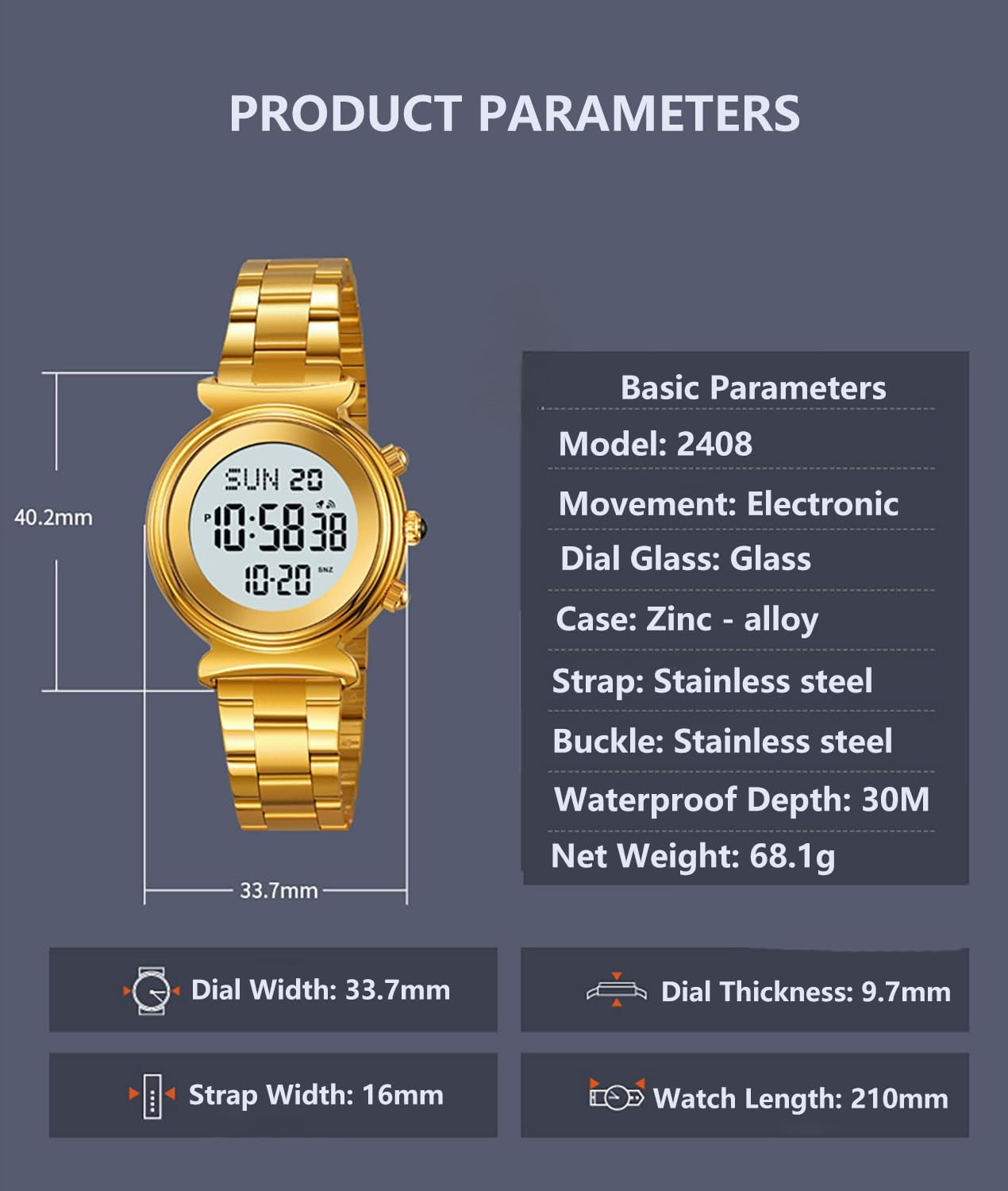 Store New Arrivals Add to Favorite View Feedback Contact Fast deliveries to the customer's home Quality customer service John Make the customers happy! Women'S Digital Watch Stainless Steel Watch for Women Waterproof Dual Time Date Watch Women'S Business Watch Description Watch Type: Fashion Wrist watch for Women Watch Style: Casual, Business Movement type:Digital Case material: Alloy Mirror material: Glass Strap material:Stainless Steel Buckle type:Buckle Product Specifications Watch length:210mm Strap width:16mm Dial thickness:9.7mm Dial diameter:33.7mm Watch Weight:68g Item model number JS2408 Color Gold Model number JS2408 Batteries 1 A batteries required. (included) Department womens Package Dimensions 2.76 x 2.72 x 2.05 inches; 2.4 ounces Clasp Buckle ABOUT US We offer the best prices around on high quality products. Our E-store includes media such as books, movies, music and games while offering electronics, toys, sporting apparel, clothing, tools, general home, garden items and more. SHIPPING We are always working hard to ensure your package arrives as soon as possible. Please understand that some factors like weather, high postal traffic, and the performance of shipping companies are outside of our control. We offer free shipping to the lower 48 states and ship within 2 business days of payment, usually sooner. We do not accept P.O. Boxes. Please provide a physical address. For shipping outside of the continental USA, we only use eBay's Global Shipping Program. The item is shipped to KY and then sent to the rest of the world. International customers are responsible for all duties and taxes. Continue to 'check out' to calculate costs for shipping the item to your country. Messages regarding eBay's Global Shipping Program MUST be directed at eBay EXCLUSIVELY. RETURNS We offer a 30-Day Return Policy on items in which you are not completely satisfied with. You have the option of a full-refund or an exchange of the item. No returns are available on items shipped outside of the USA PAYMENT We accept PayPal. CONTACT US This page content is yet to come Please ad us to your favorite seller and visit again later Thank You CUSTOMER SATISFACTION We try our very best to make sure every customer is completely satisfied. If there's a problem, message us! We're happy to help. WE ACCEPT
