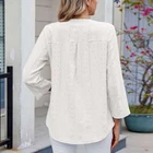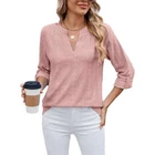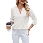 Specifications: Material: 65% Rayon, 30% Polyester, 5% Spandex Optional Color: Black, Pink, Blue, White Optional Size: S, M, L, XL, 2XL Pattern: Solid Color Neckline: V Neck Sleeve: 3/4 Long Sleeves Closure: Pull over Fitting Type: Loose Fit Style: Casual Occasion: Daily, outings, outdoor activities, work, school, etc. Care: Machine Wash Cold Features: · Women’s Pretty Jacquard Blouse: This pretty jacquard blouse is textured and stylish. · Soft & Breathable: It is soft and breathable that comfy to wear all day long. · Sexy V-Neckline: V-neckline enhances detail and sexiness. · Roll-Tap Sleeves: Buttoned roll taps make the cuffs easy to be rolled up. · Back Pleats Design: Back pleats design gives the top a flattering silhouette. · Easy to Match: This top is easy to match your casual-styled jeans, pants or shorts. · 4 Color Options: It is available in 4 classic colors to meet your preference. Notes: * Please kindly compare the size chart before purchase. * Due to effect of light, camera and monitors, the item’s real color may be slightly different. * Allow slight dimension difference due to manual measurement. * Thank you for your kindly understanding. Package included : 1 PC Women’s Top