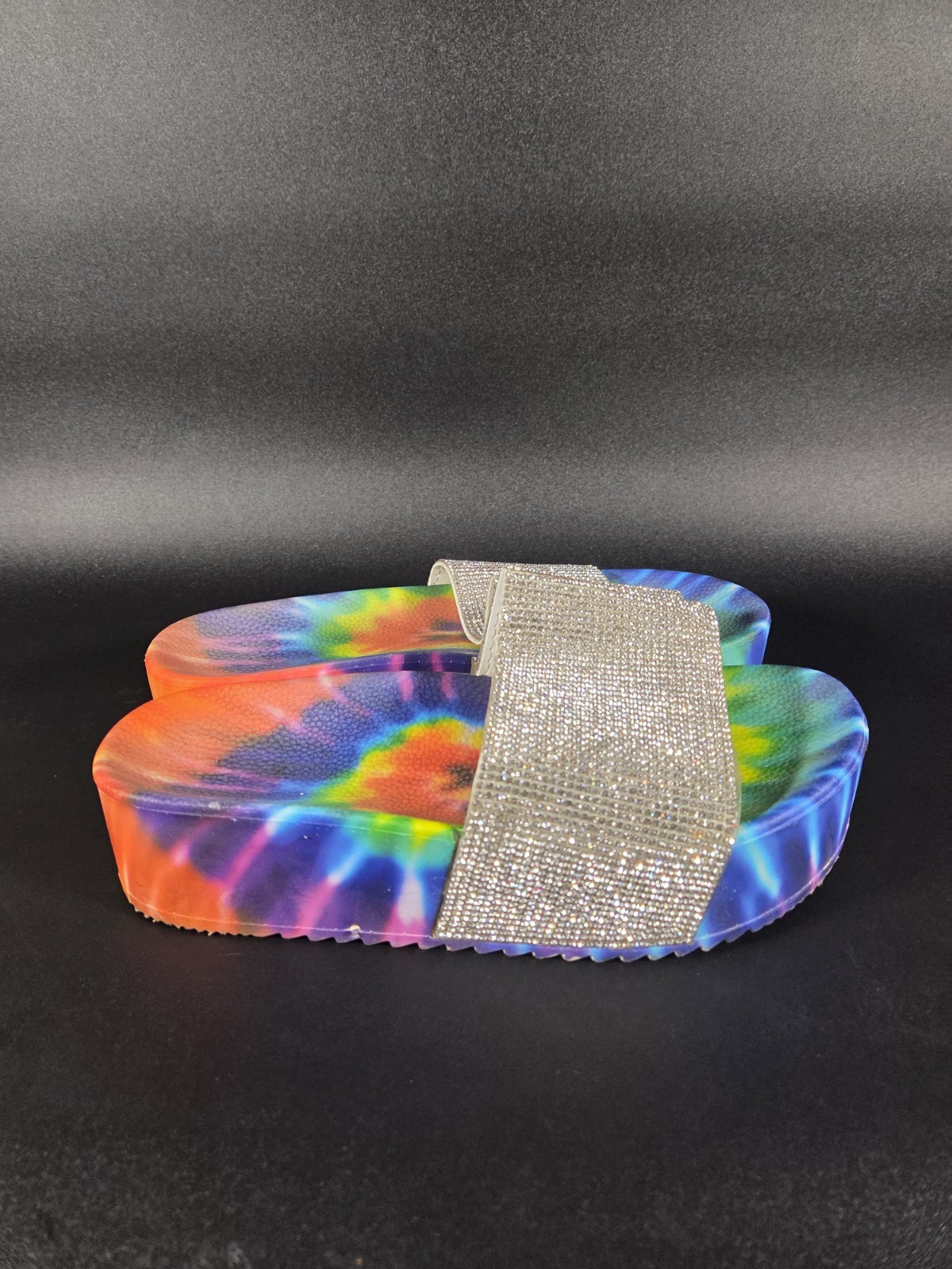 These Mata Brand open toe tie-dye rhinestone platform sandals are designed for women who want to make a statement with their footwear. The slip-on style and low heel height make them comfortable and easy to wear, while the multicolor tie-dye pattern adds a fun and vibrant touch. The rhinestone accents on the upper material of leather give these sandals a touch of glamour, perfect for adding a pop of style to any outfit. Ideal for casual summer looks or dressier occasions, these sandals are a stylish choice for any fashion-forward woman.