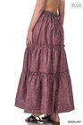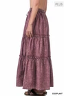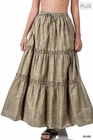Description Woven acid washed drawstring waist tiered ruffle maxi skirt. 100% cotton premium poplin fabric. Material: 100% Cotton Waist ~ 1X: 31-34" 2X: 34-37" 3X: 37-40" Hips ~ 1X: 41-44" 2X: 44-47" 3X: 47-50" Measurements - Total Body Waist: 34" Approx. ~ Measured from 1XL - Length from Waist to Hem: 39" ~ Measured from 1XL