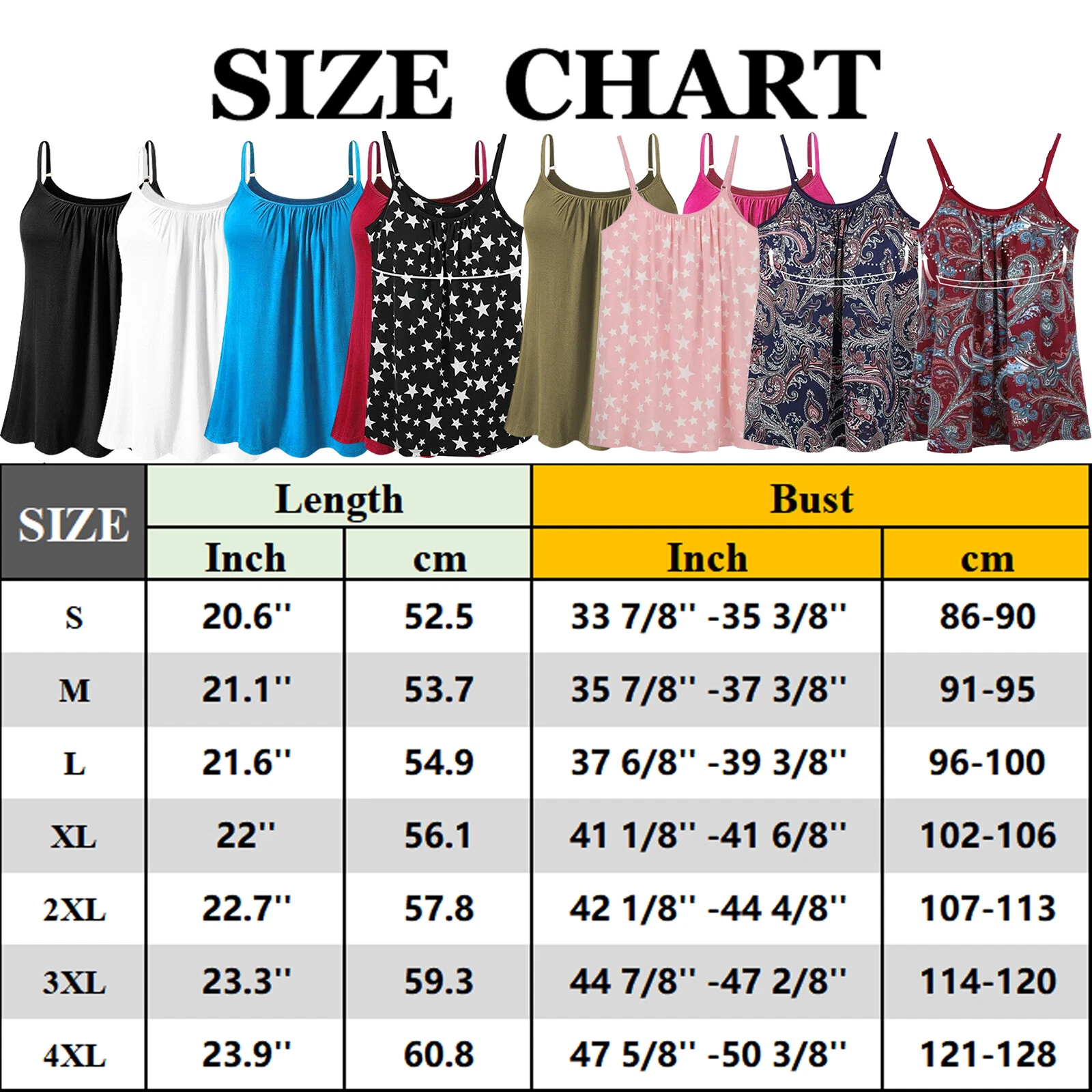 Items Description Different display screens will have slightly different colors and Please check the image size chart we provide before purchasing. Please understand. This fabric of the clothes uses 95% Polyester, 5% Spandex to print, comfortable, skin-friendly, soft to touch And wear. This Women Summer Top is lightweight, soft and flattering. The straps are adjustable. This will be a modern cami tank top for your wardrobe. You can wear it with ripped jeans,skirts or low waist denim pants for a sexy club party look. You can also match it up with your favorite culottes and have a chic street look. You can also make it a basic top lounging at home. Wear it up or down with this new camisole. Casual sleeveless tank tops for women, bohemia tie die print, sleeveless, flowy Hem,unadjustable spaghetti straps makes you look fashion and elegant in summer. This cami tank can be matched with leggings, dresses, shorts, pencil skirts and casual pants. You can wear with a cardigan or a jacket with it beneath in air-conditioned room. Shipping Payment Return Policy Feedback About us Shipping 1.We ship all of our items within 1 business days from US warehouse .(exclude holidays and weekends) after the payment being cleared. 2.It usually takes 1-5 working days for the delivery. But, the transit time is highly depend on Postal Service after we dispatched.If you have any questions about your shipping, please do not hesitate to contact us .Our customer service will try our best to resolve the issue for you. CAUTION: Please kindly note that we dispatch the item(s) by buyers' eBay registered address. Please provide your correct delivery address before you send the payment. It's very important for us to avoid any loss caused by the wrong address, and then you could get the item smoothly. Payment 1.We accept Paypal, Paypal Credit, credit or debit card, Apple Pay, Google Pay payment. 2.Payment must be made within 48 hrs of the auction end time. 3.Import duties, taxes and charges are not included in the item price or shipping charges. These charges are the buyer's responsibility. Return Policy 1.We provide 30 days return upon the buyer received the item. It must be in good condition and you will undertake the returned shipping cost. 2. We will offer replacement or refund for all DEFECTIVE items (not including damage resulting from accidents / abuse / misuse / improper care), but a photo is needed for our reference beforehand and should be reported to us within 7 days from purchase date. 3.All items are brand new and have been passed the quality check. All are packed in a good condition before item dispatch. Feedback 1.Any problem after receiving our goods,please contact us before leaving Neutral/Negative feedback.We promise to help you solve it asap,and make you feel satisfactory absolutely. 2.Please DO NOT leave negative feedback without asking for help. Please do not leave negative or neutral feedback if you haven't received item in 30 days, because we have mentioned the shipping time repeatedly. About us We maintain high standards of excellence and strive for 100% customer satisfaction! Feedback is very important to us. We request that you contact us BEFORE you give us neutral or negative feedback, so that we can address your concerns satisfactorily . It is impossible to address issues if we do not know about them! On Feb 14, 2025 at 01:38:59 PST, seller added the following information: